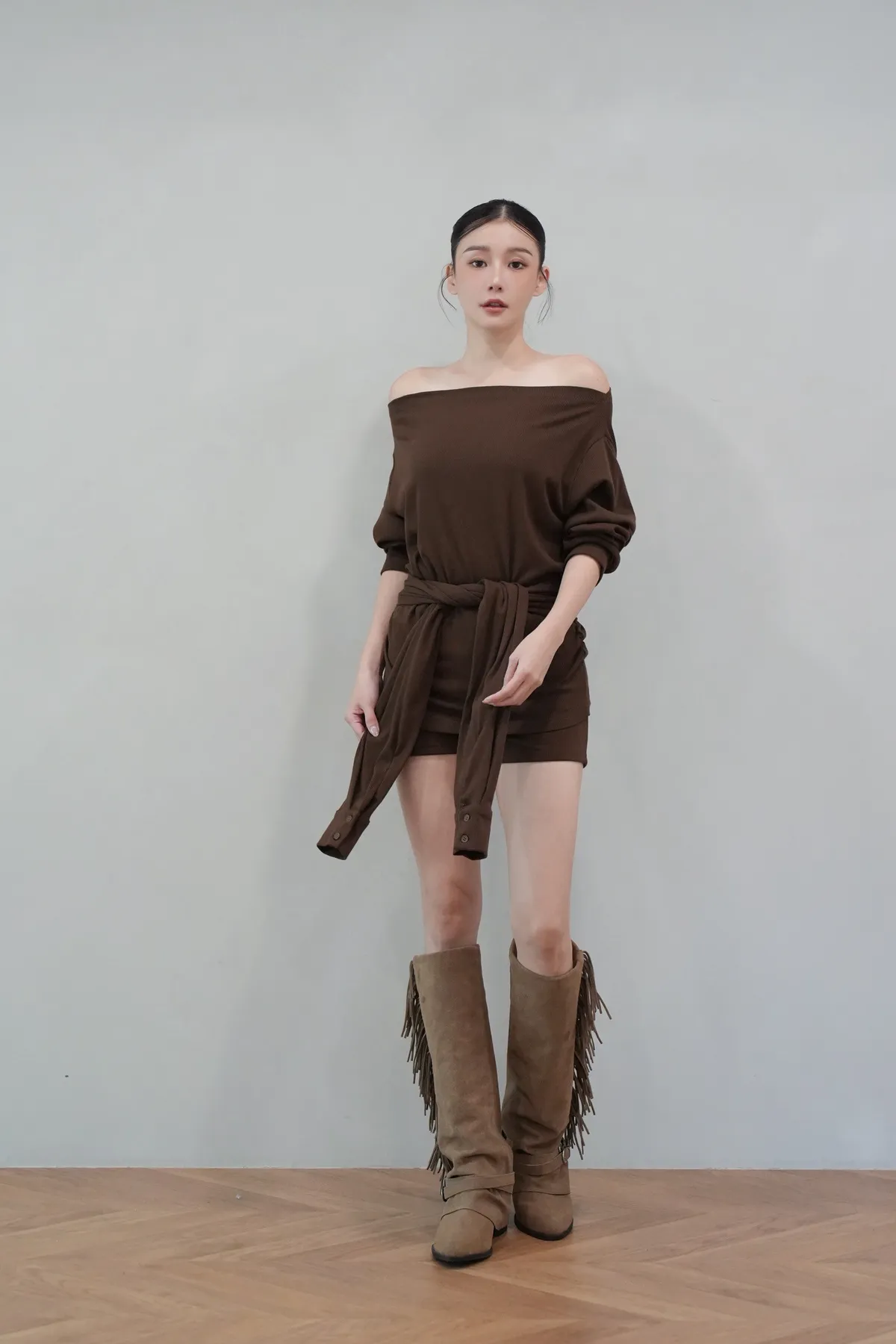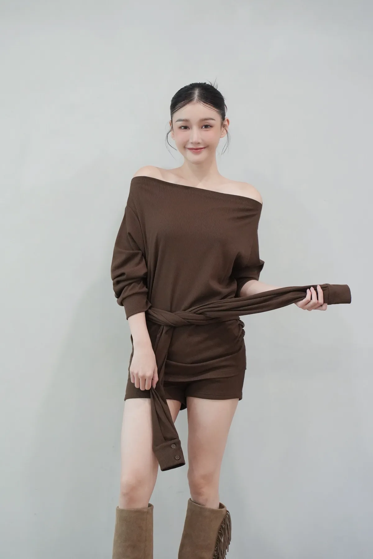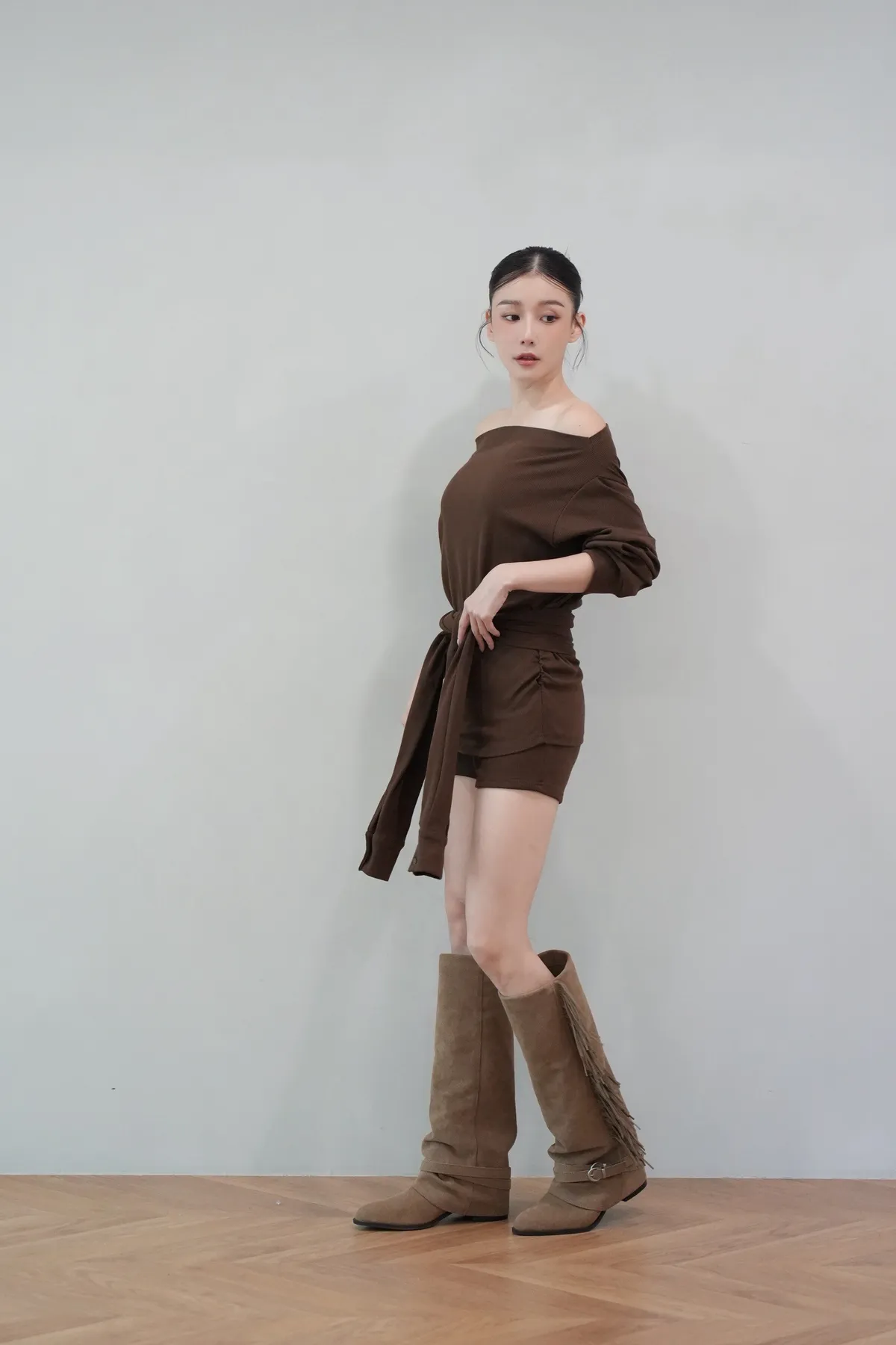 2025FW 斜肩綁帶短褲套裝