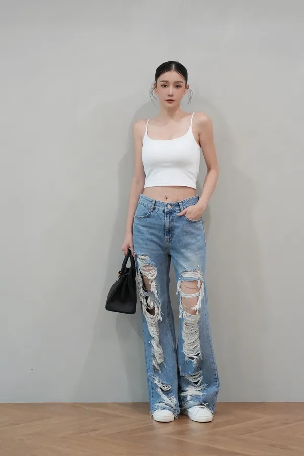 2025FW 刷破鍊鑽寬褲