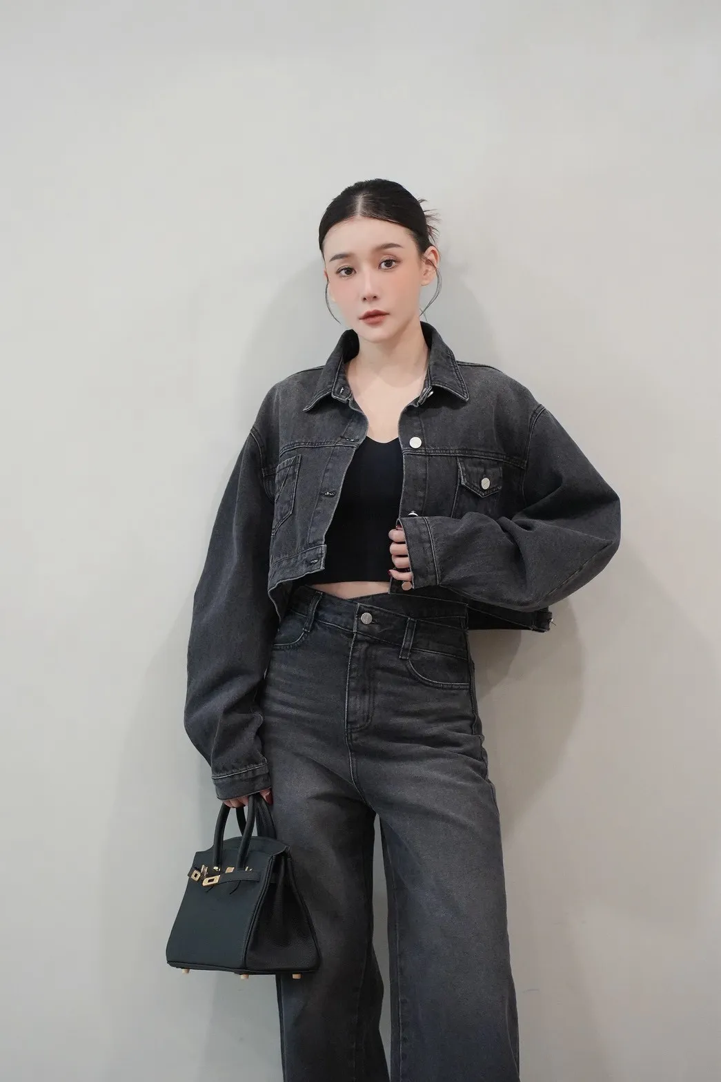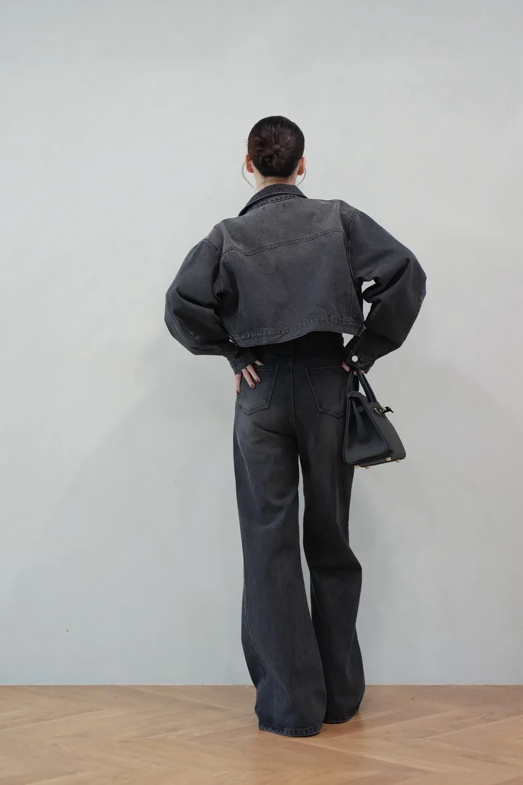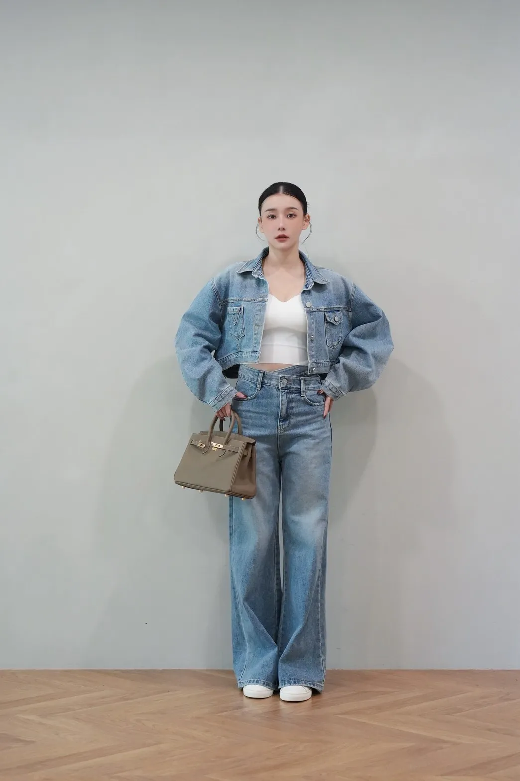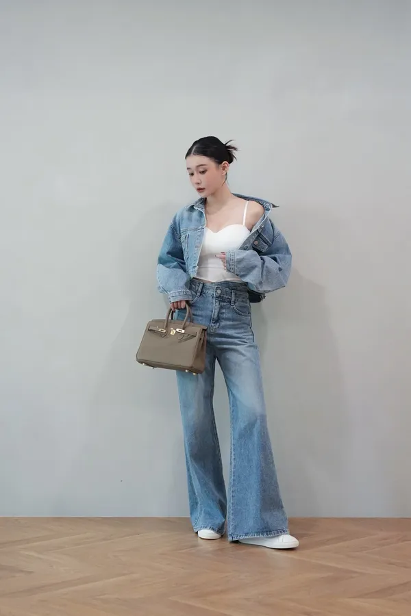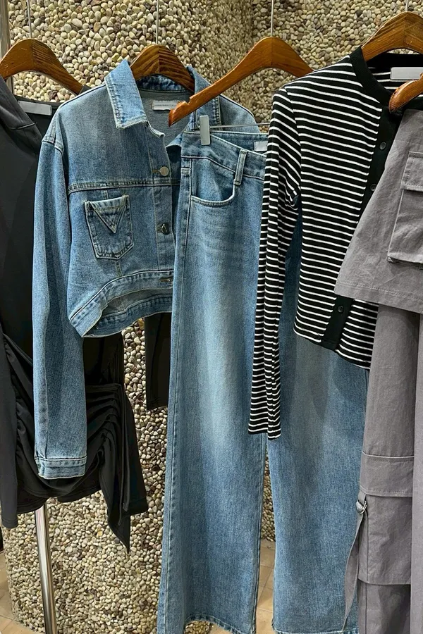 2025FW 雙口袋牛仔短版外套&雙層斜釦牛仔寬褲