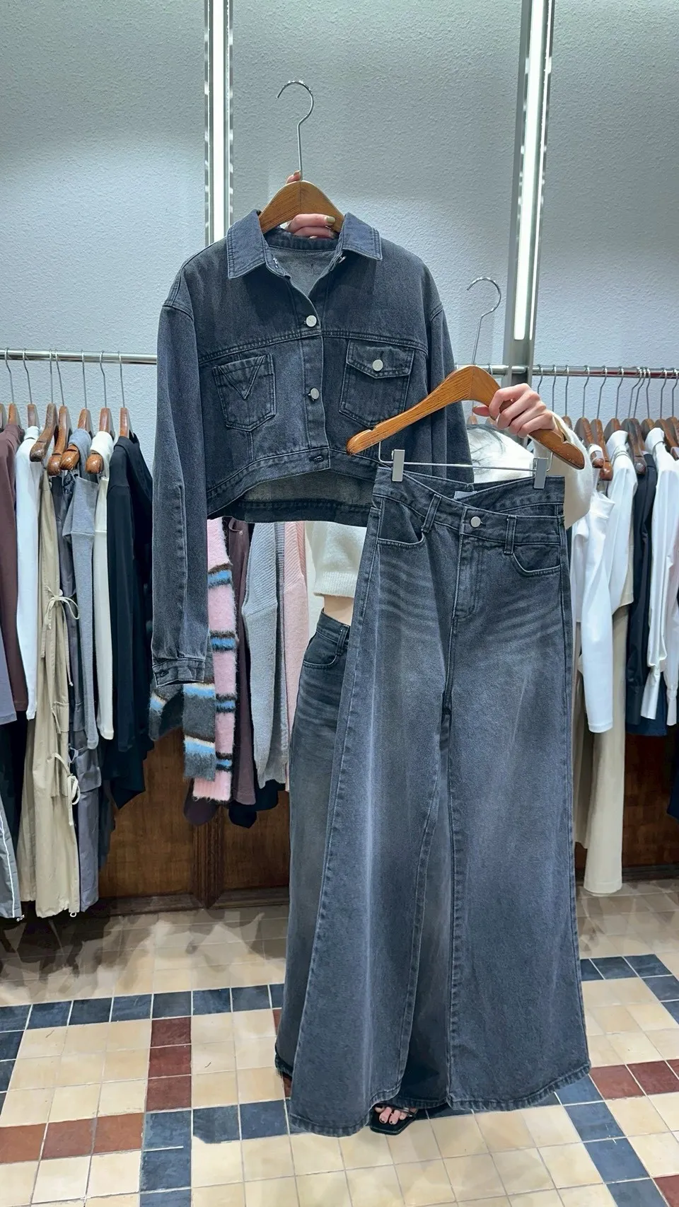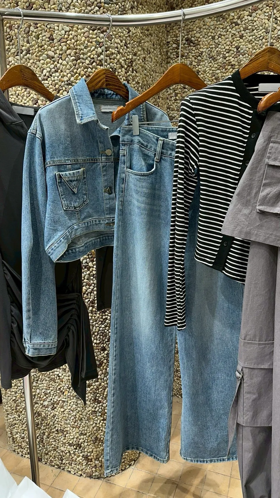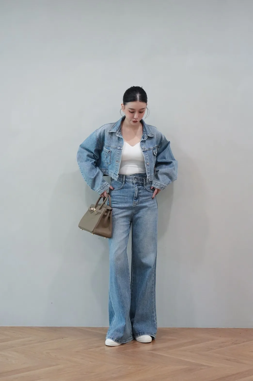 2025FW 雙口袋牛仔短版外套&雙層斜釦牛仔寬褲