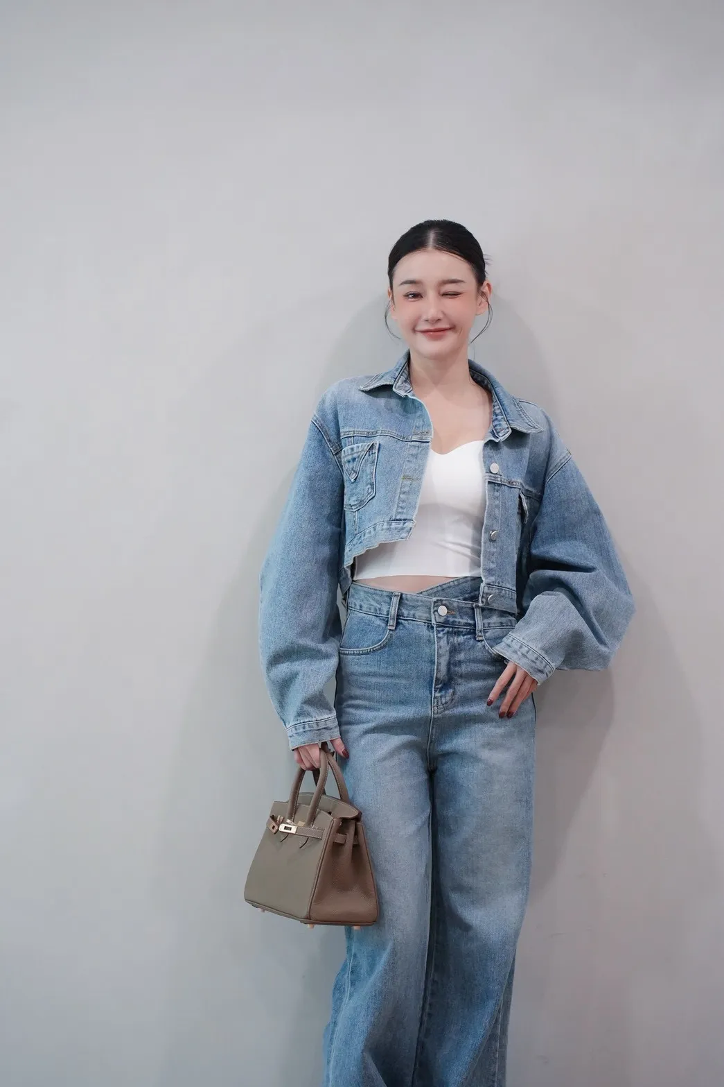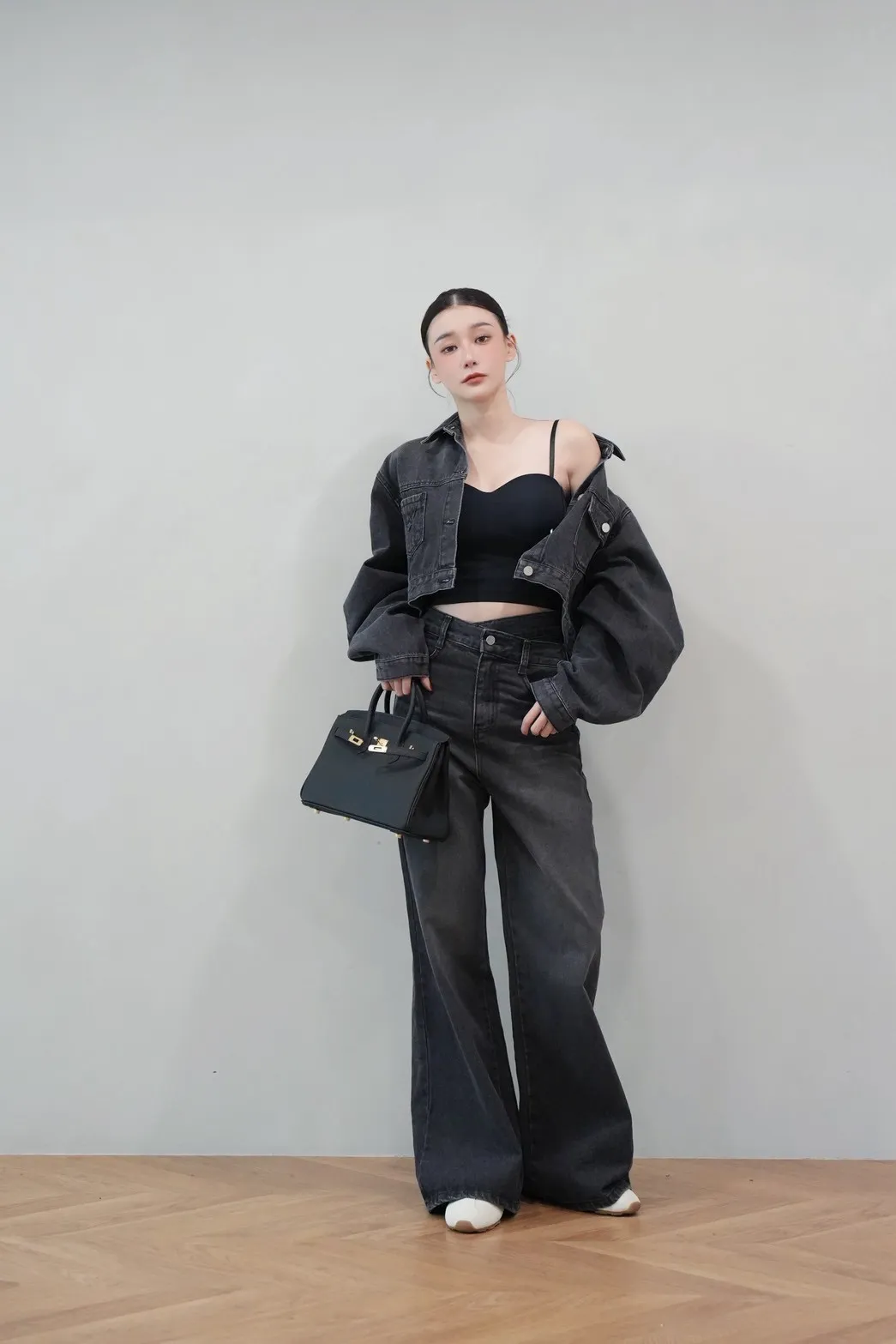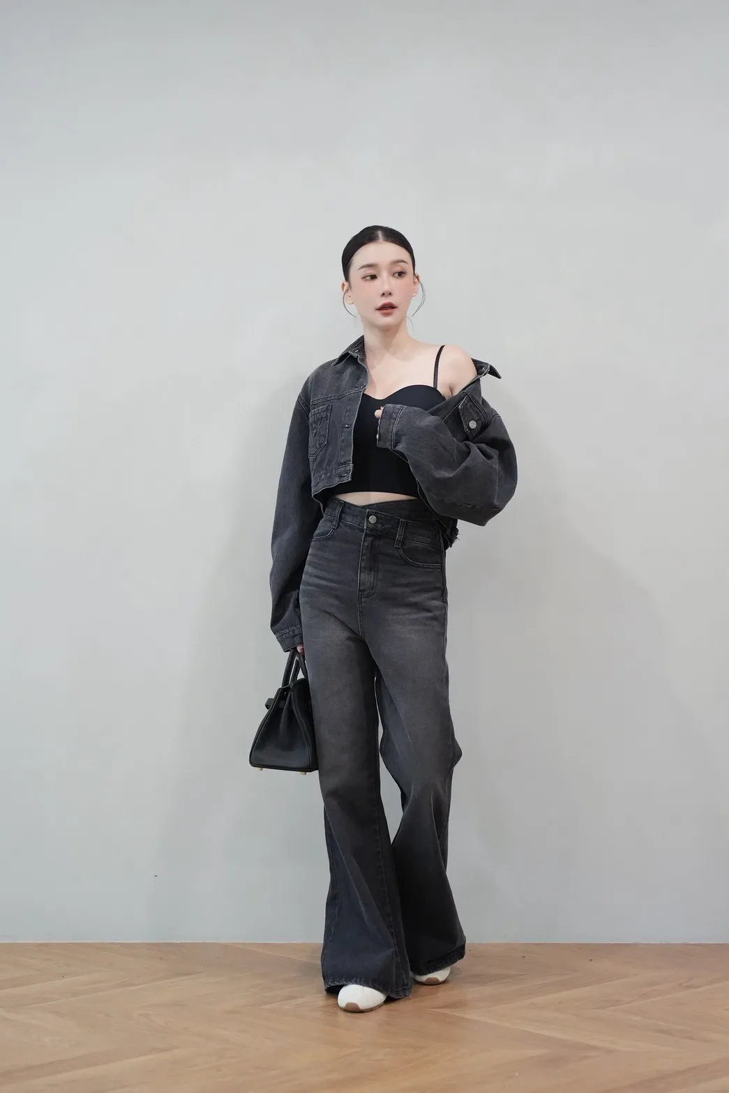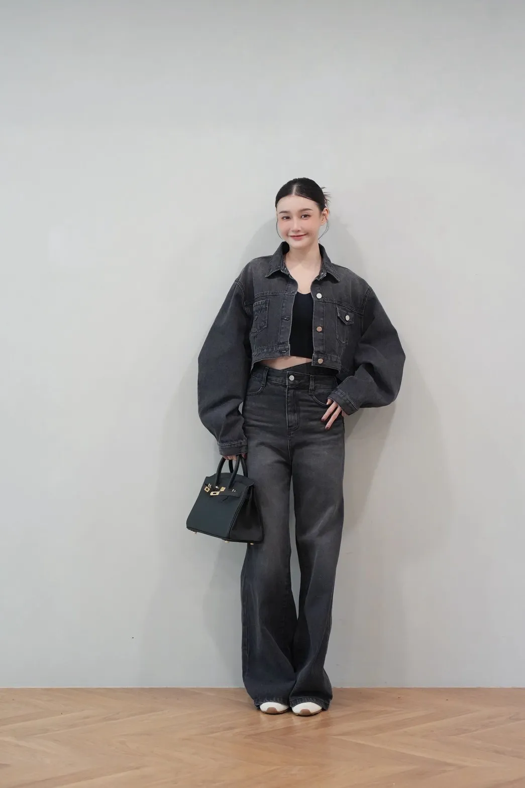 2025FW 雙口袋牛仔短版外套&雙層斜釦牛仔寬褲