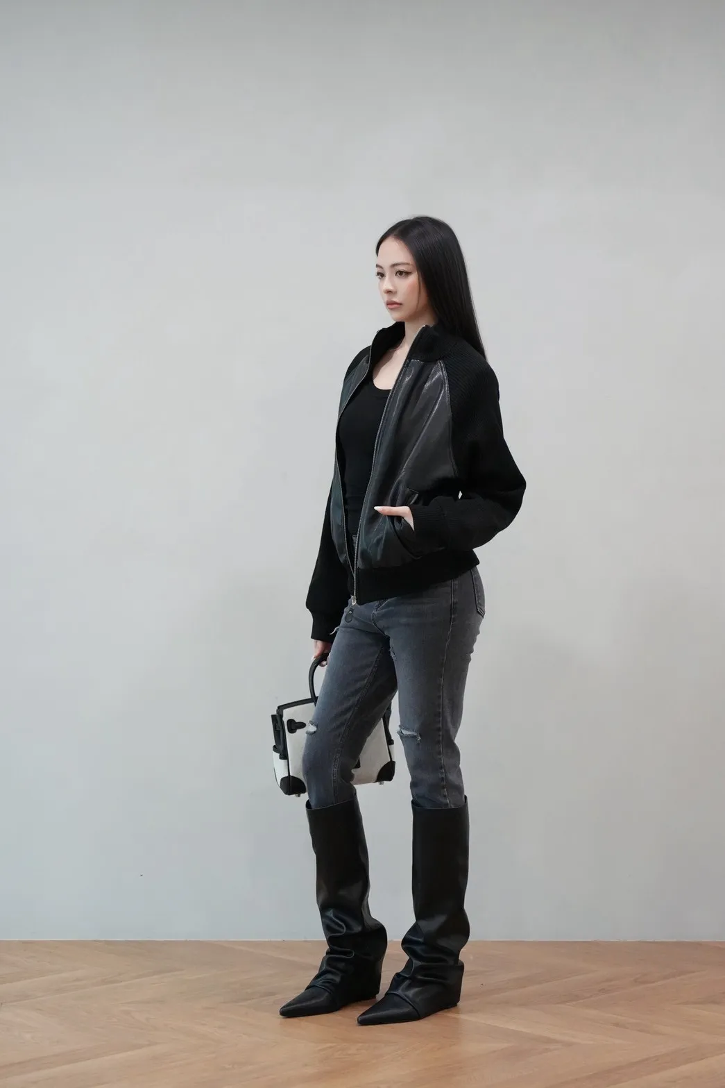 2025FW 針織拼接皮外套