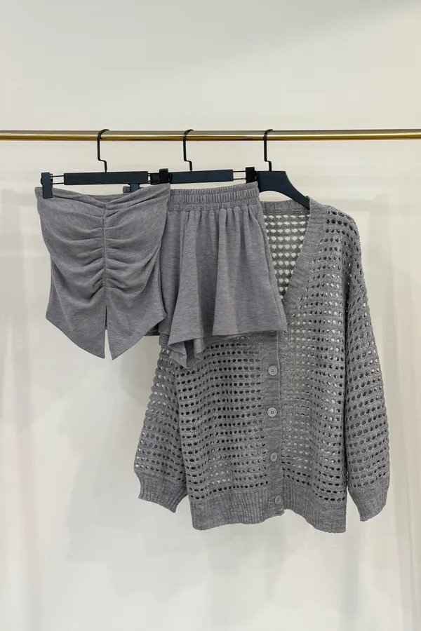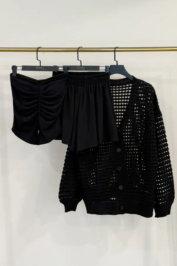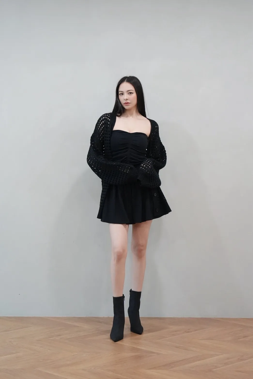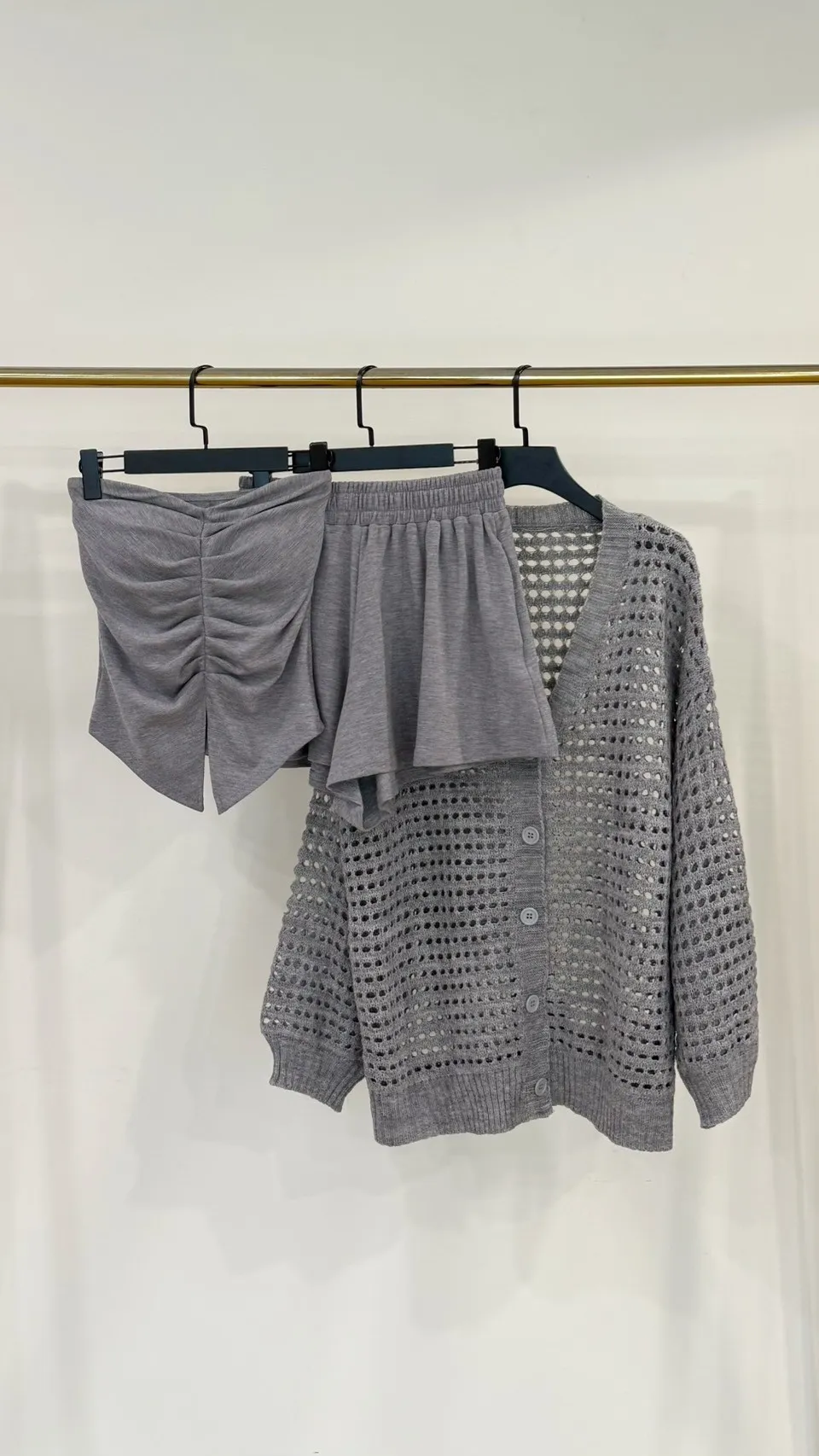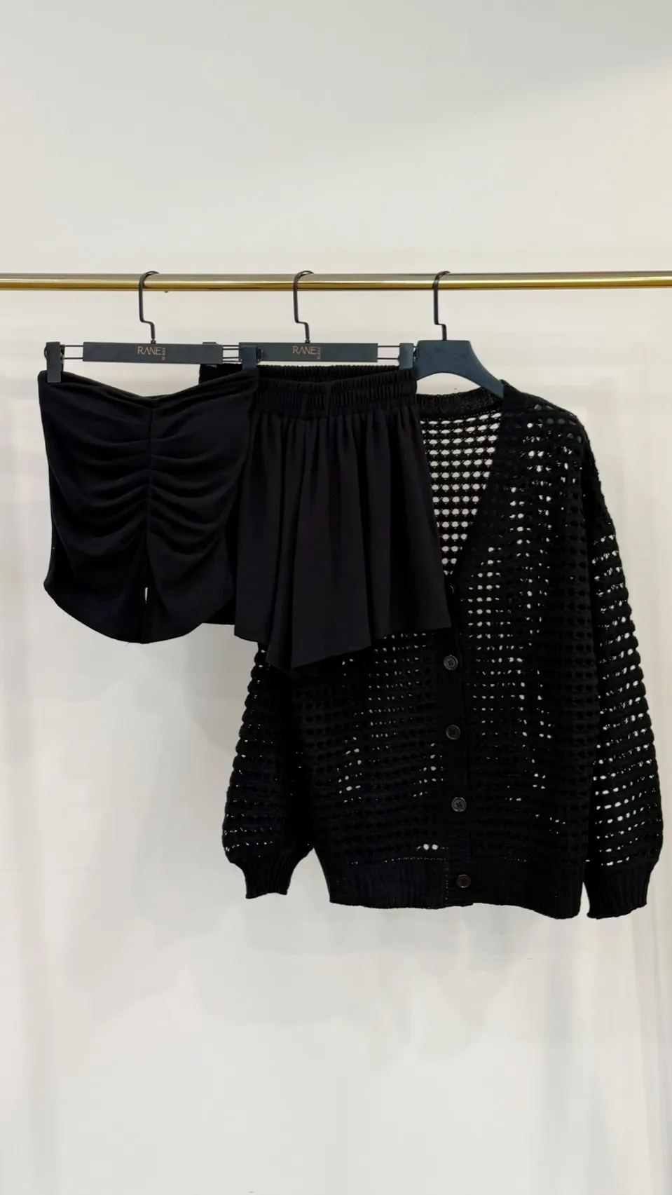 2025FW V領針織&抓皺背心傘褲裙套裝