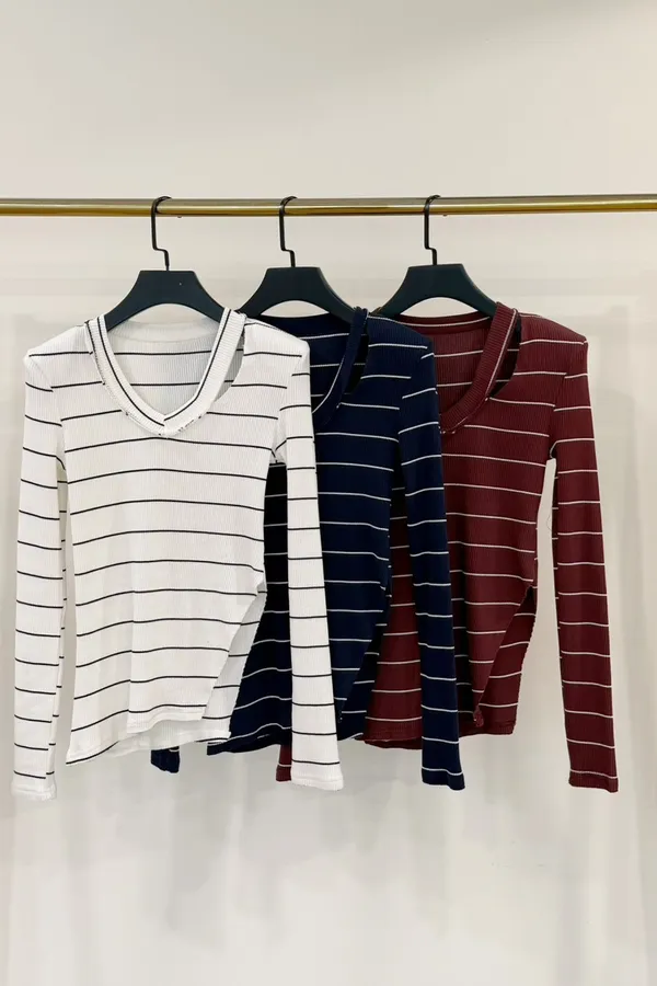 2025FW 領割破橫條上衣