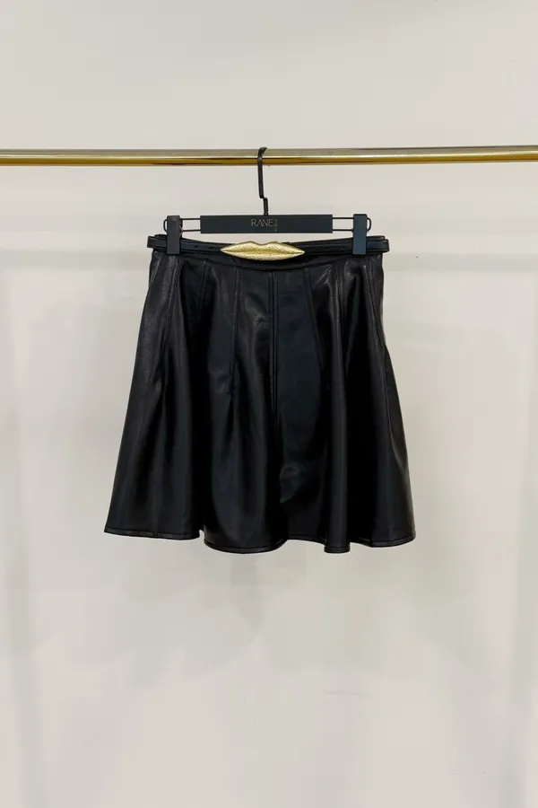 2025FW 設計師家霧金嘴唇皮帶傘裙