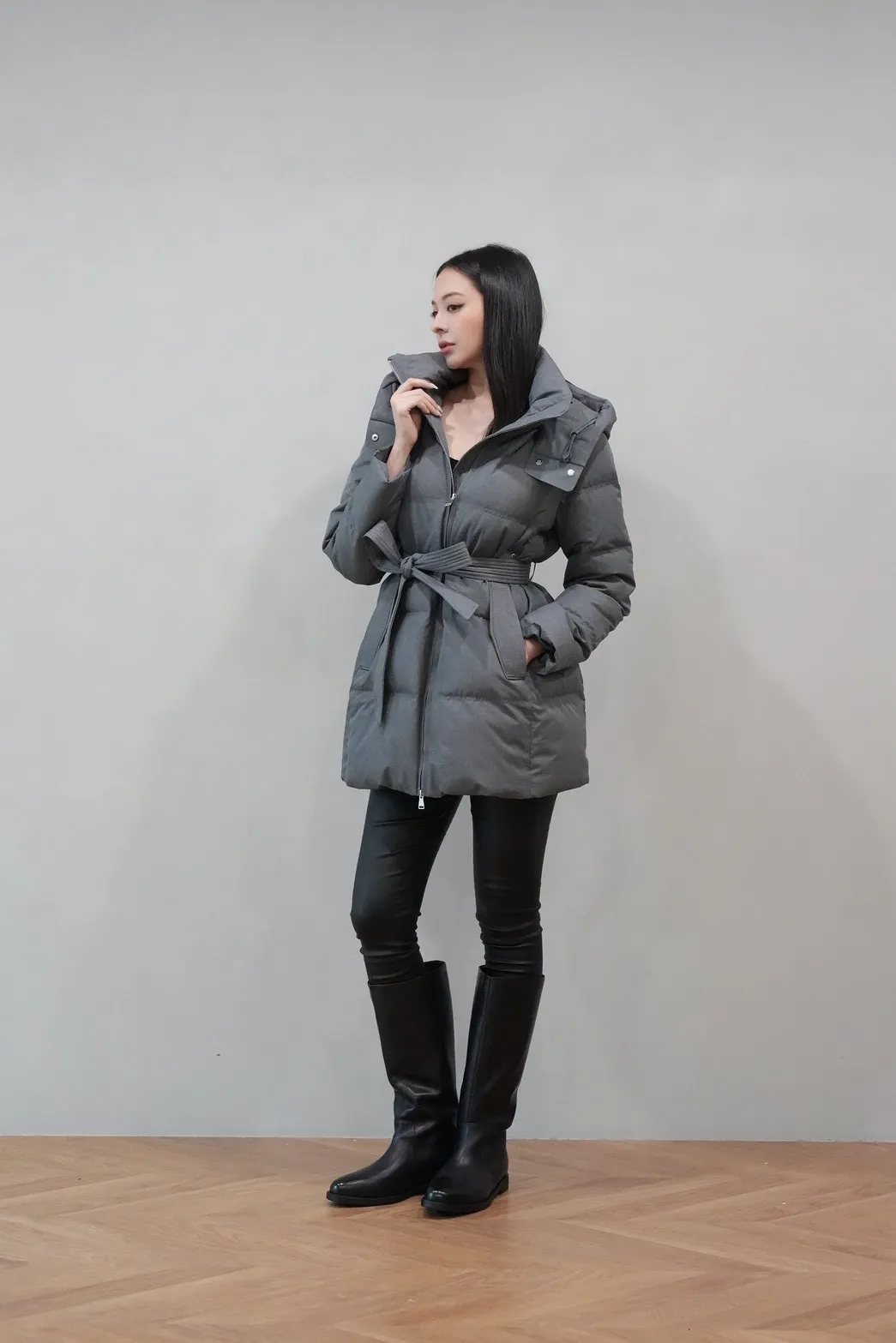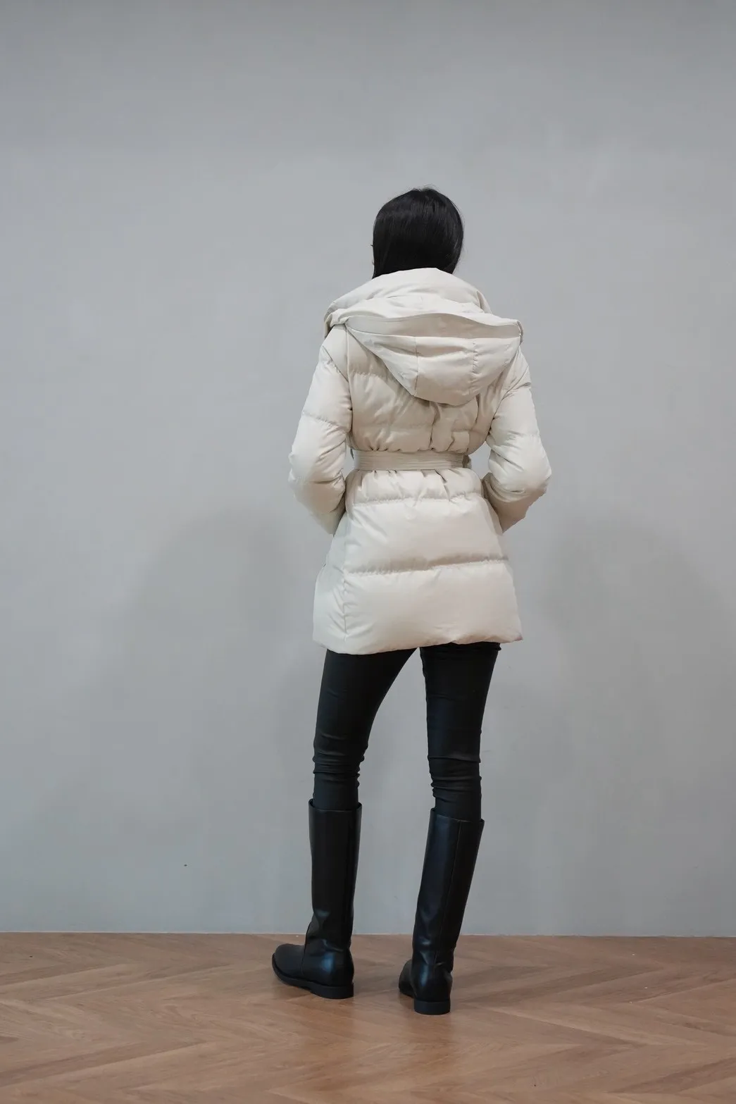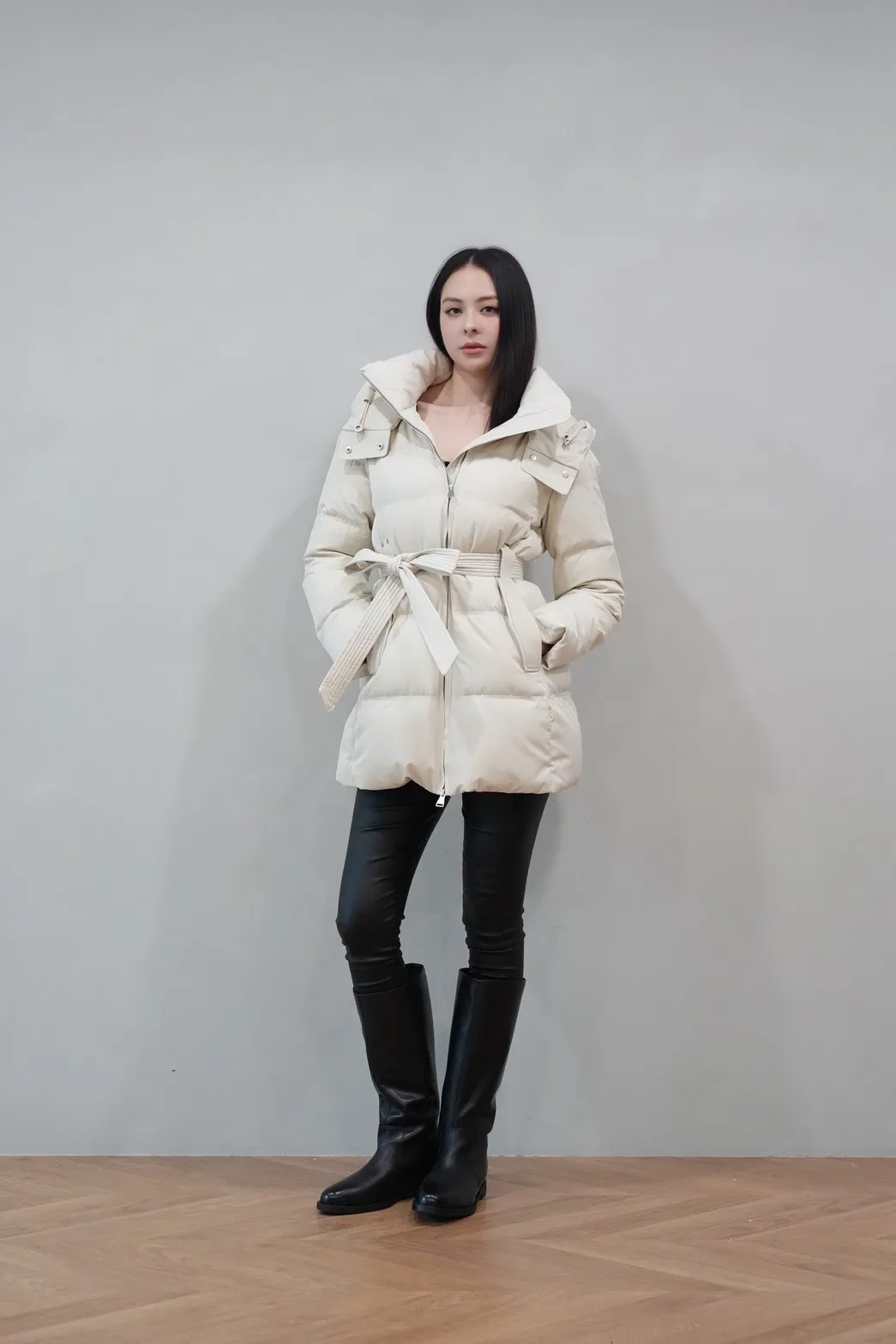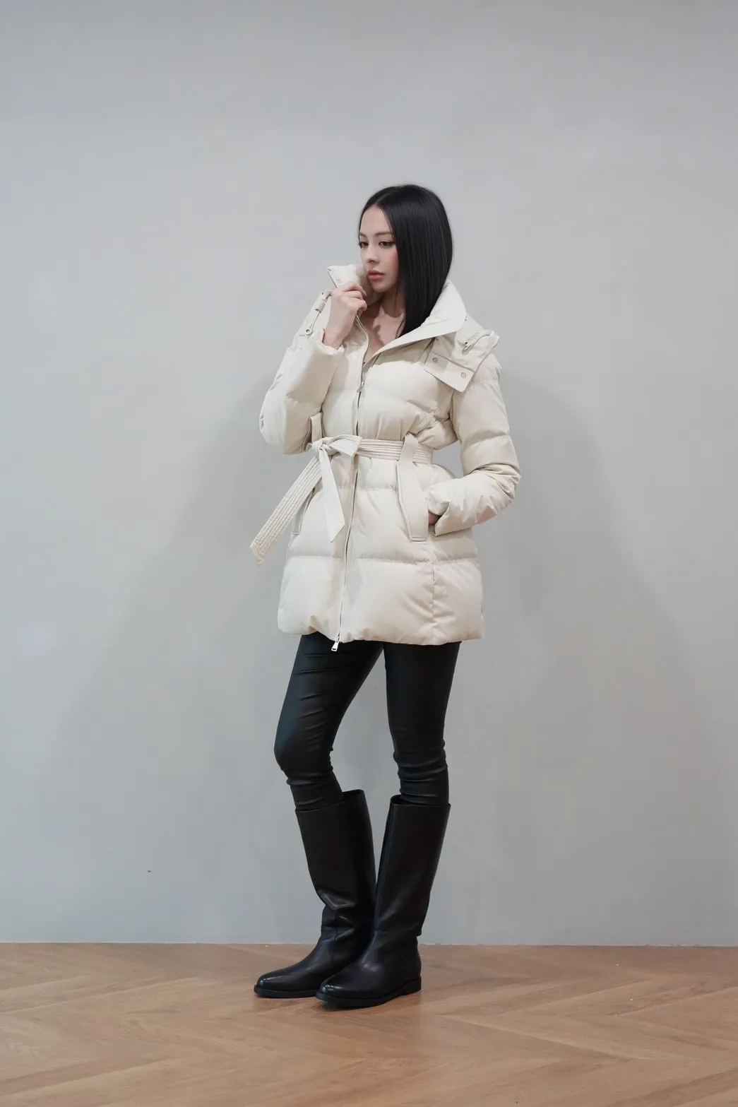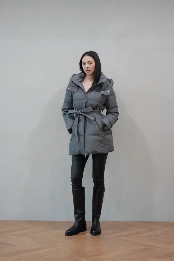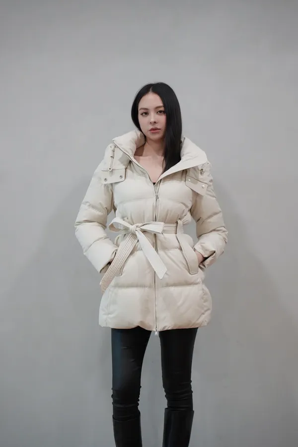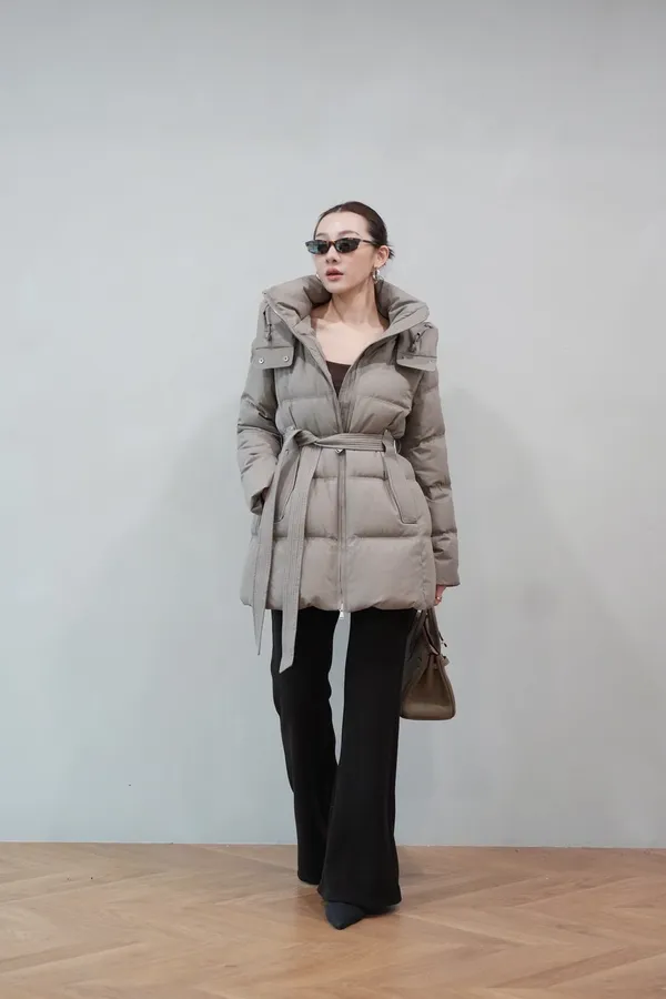 2025FW 連帽綁帶紋理羽絨短外套