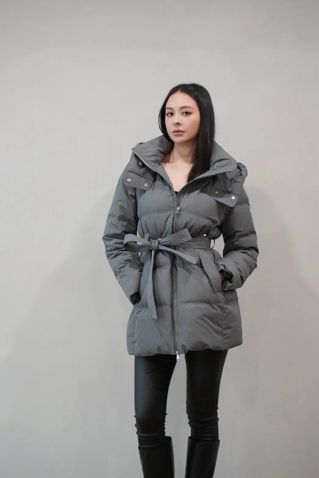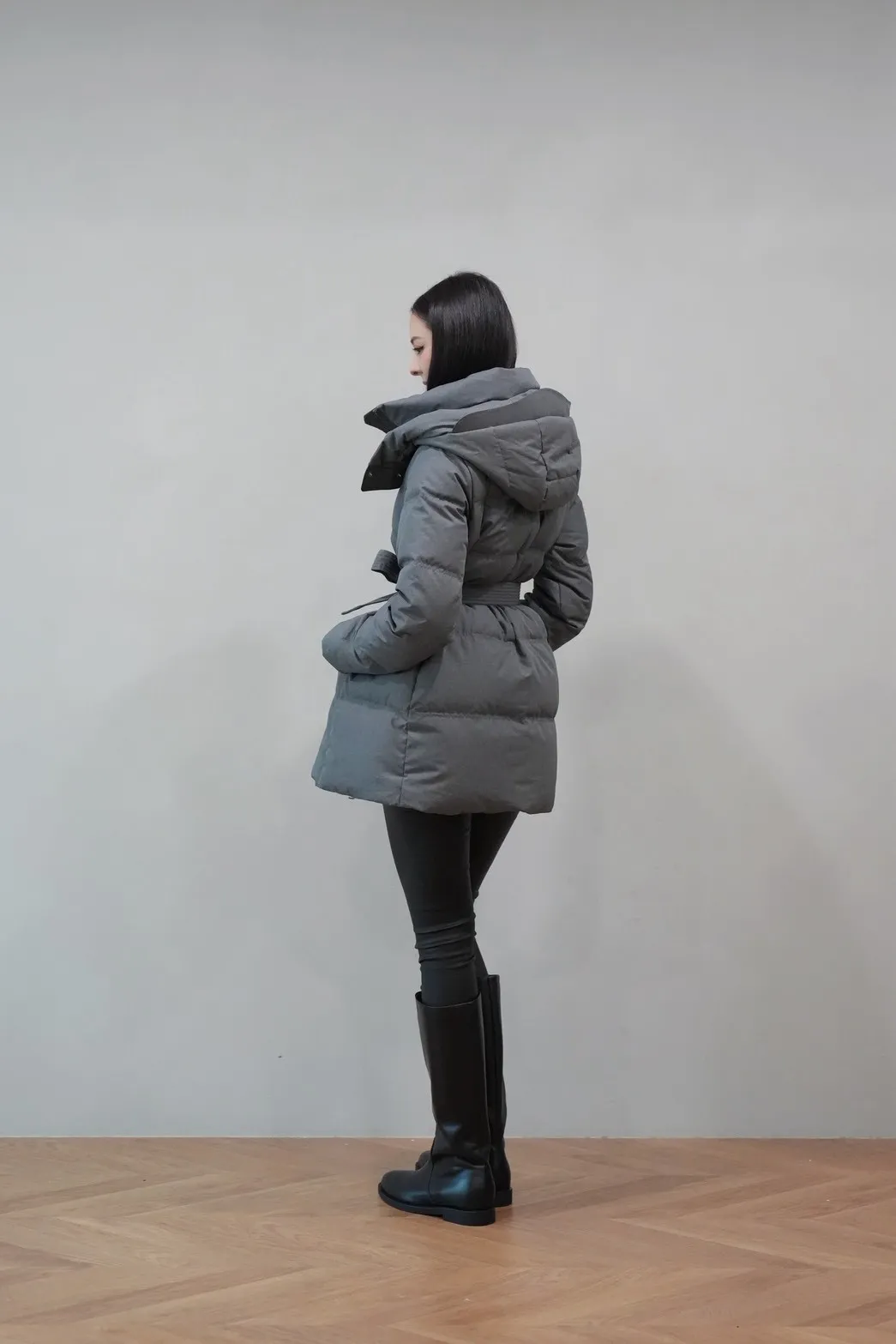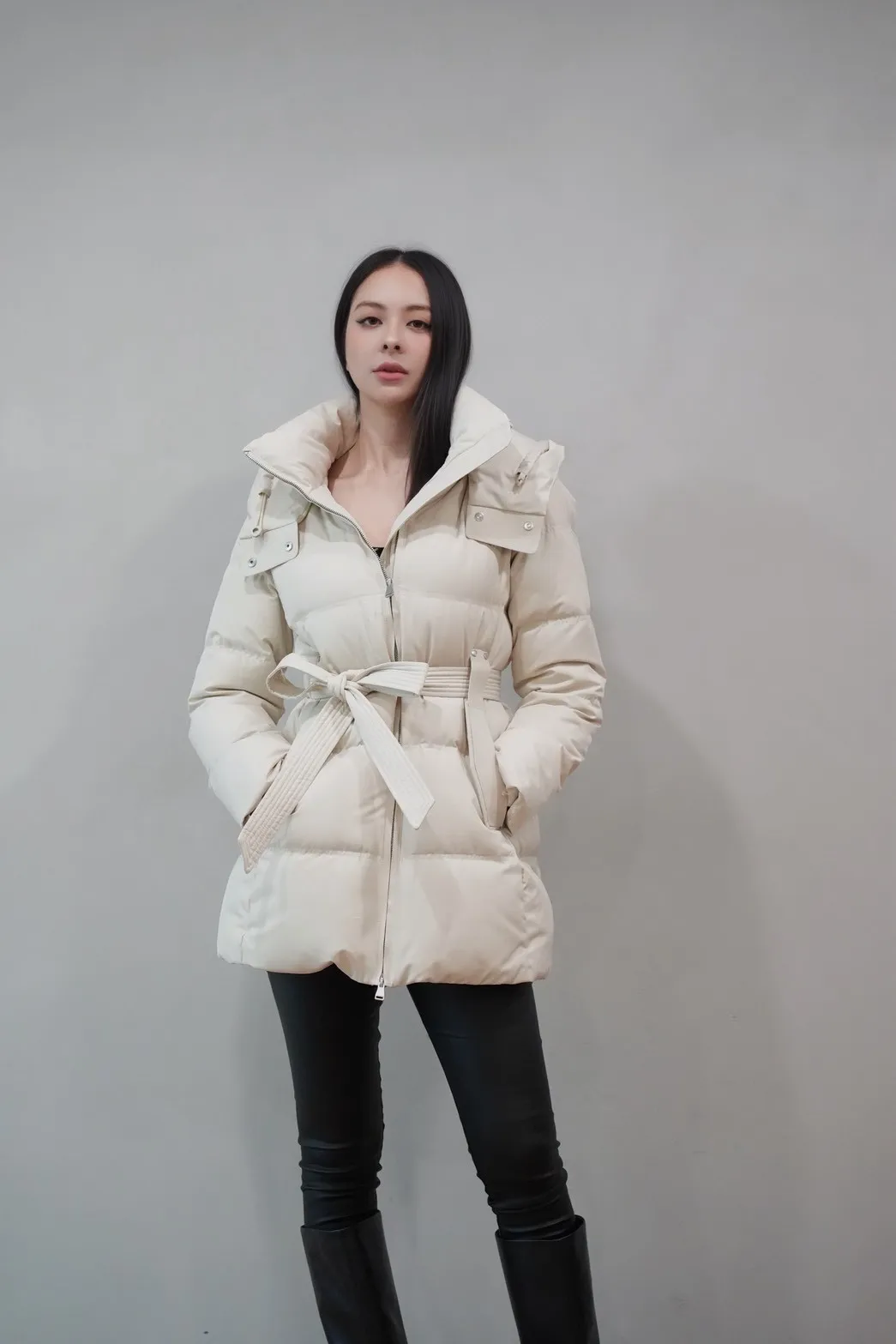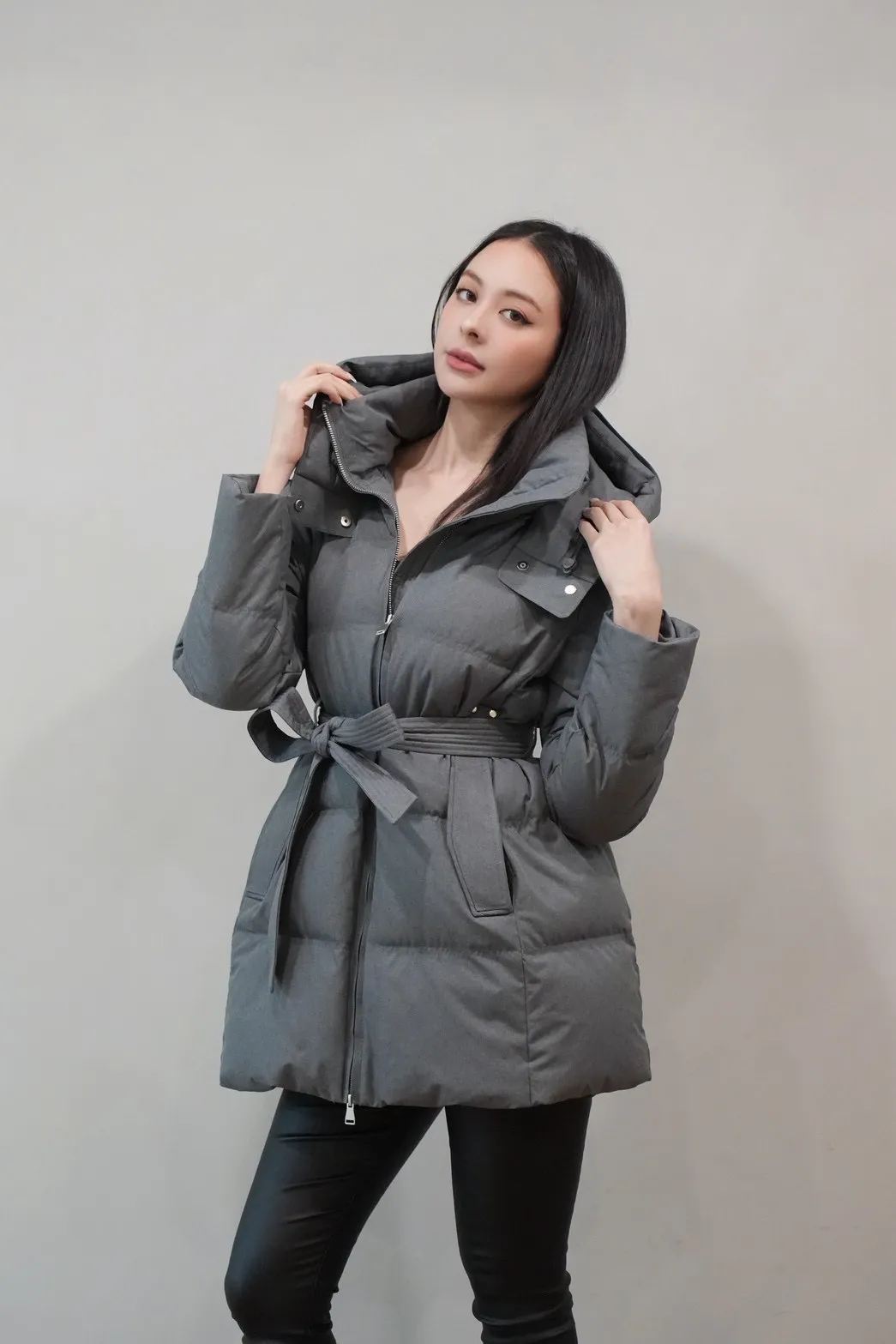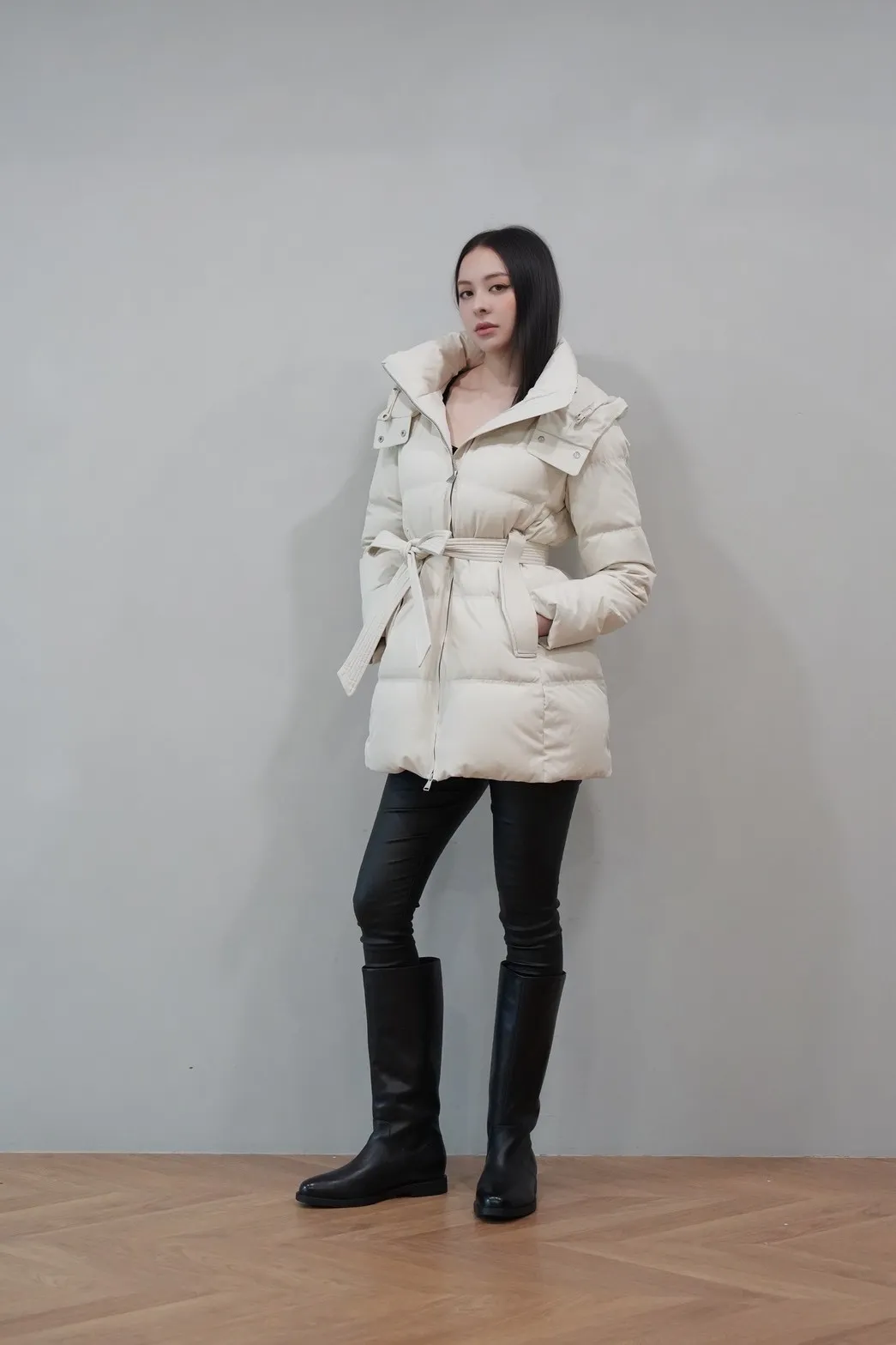 2025FW 連帽綁帶紋理羽絨短外套