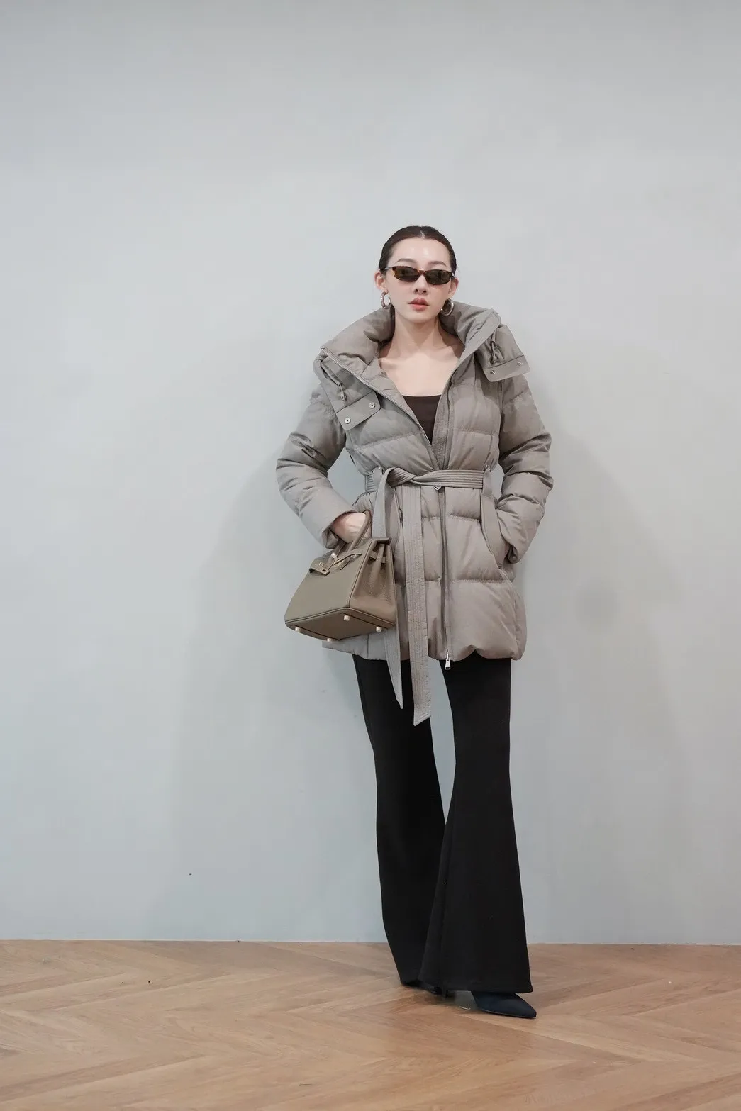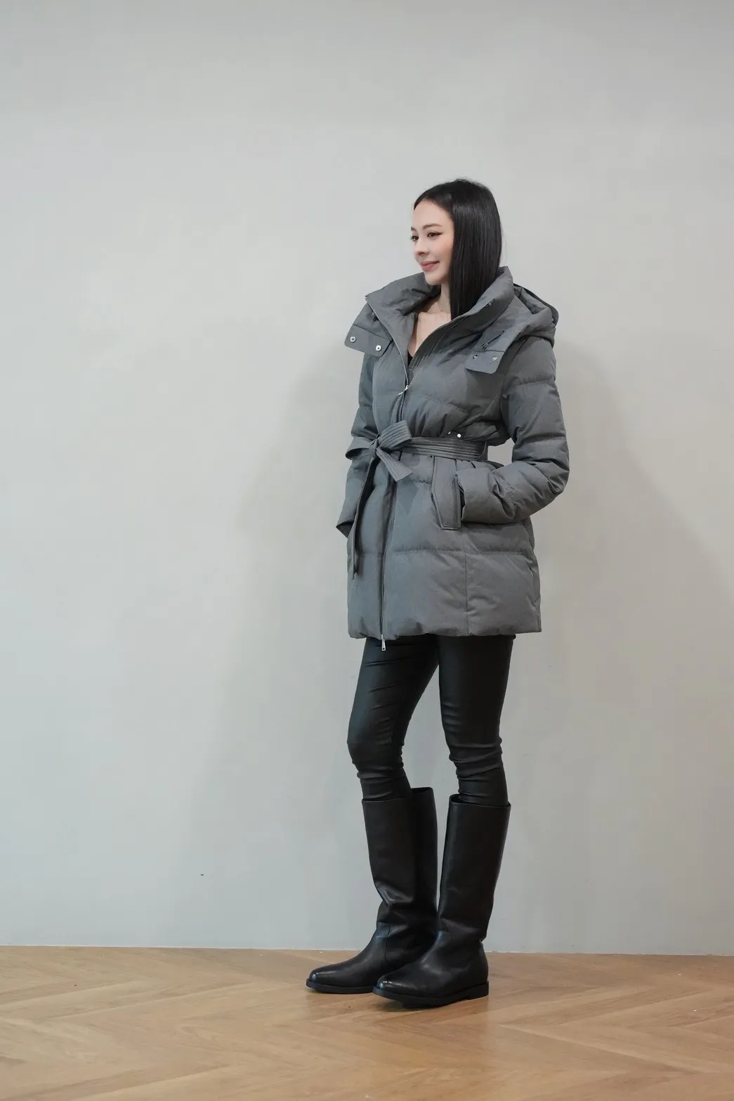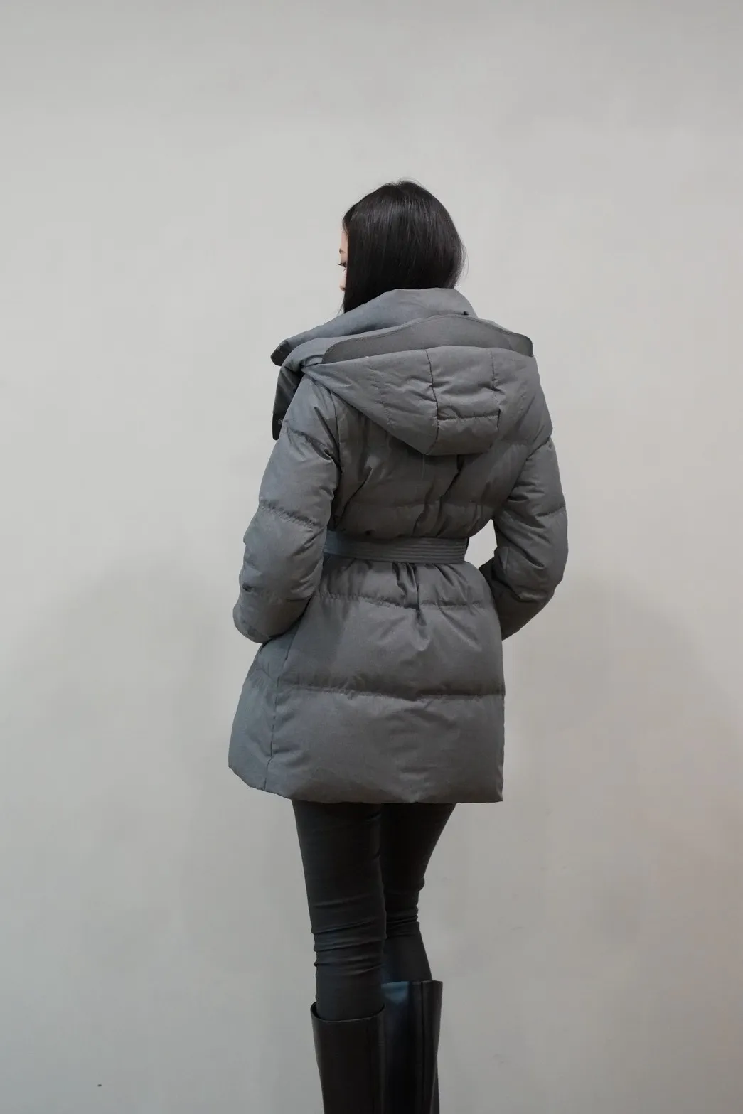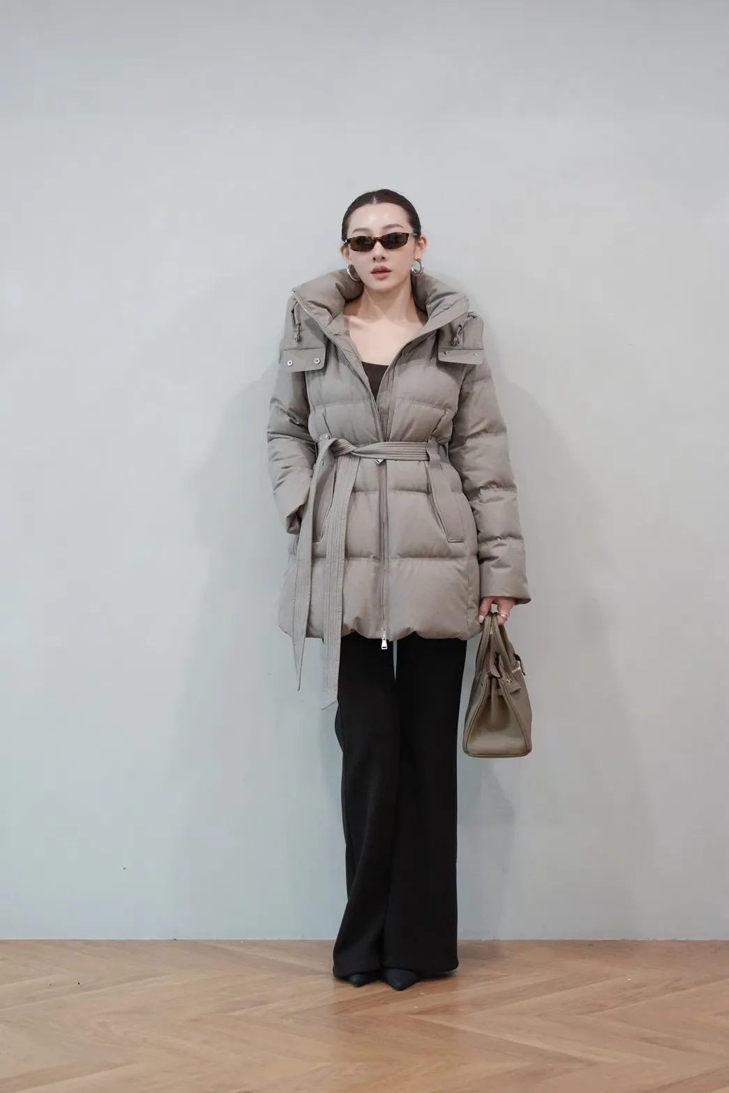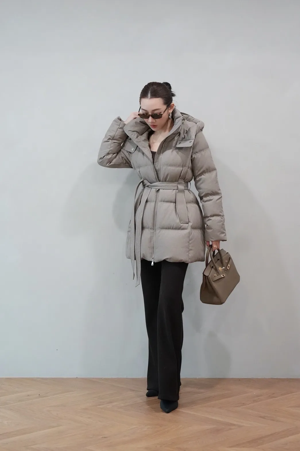 2025FW 連帽綁帶紋理羽絨短外套