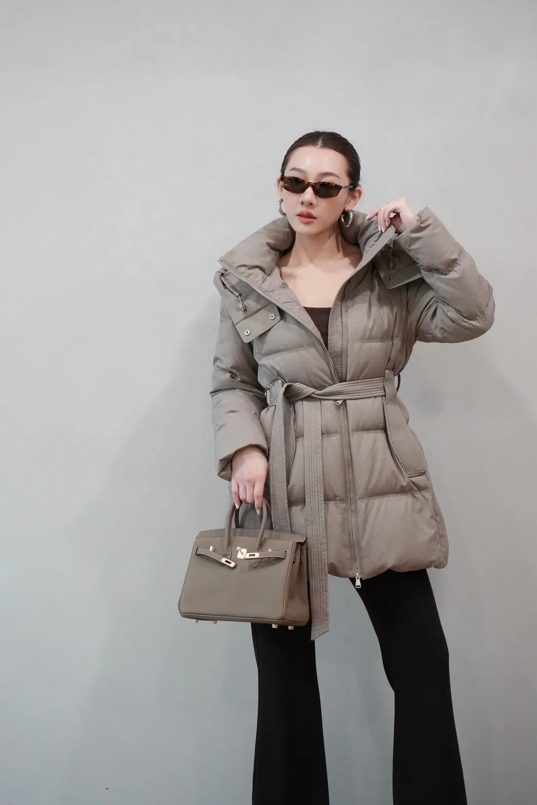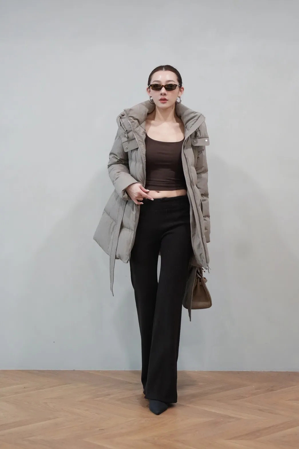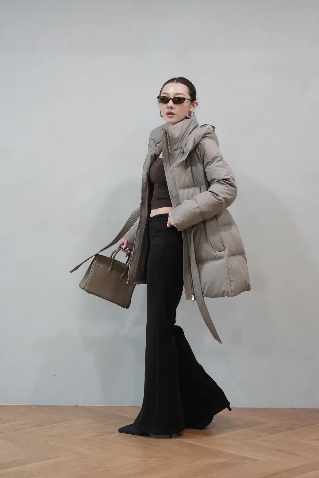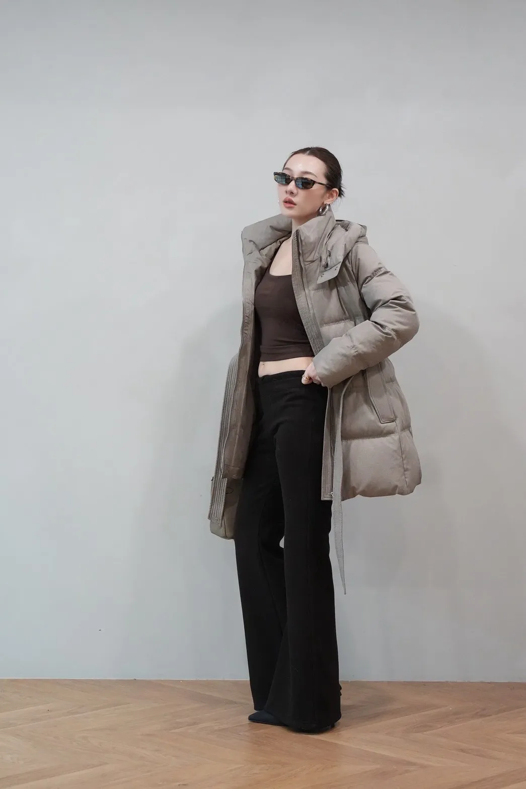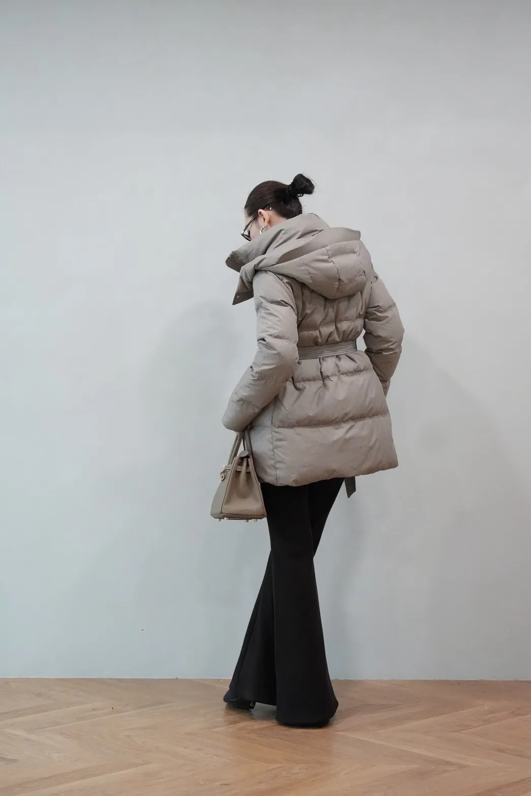 2025FW 連帽綁帶紋理羽絨短外套