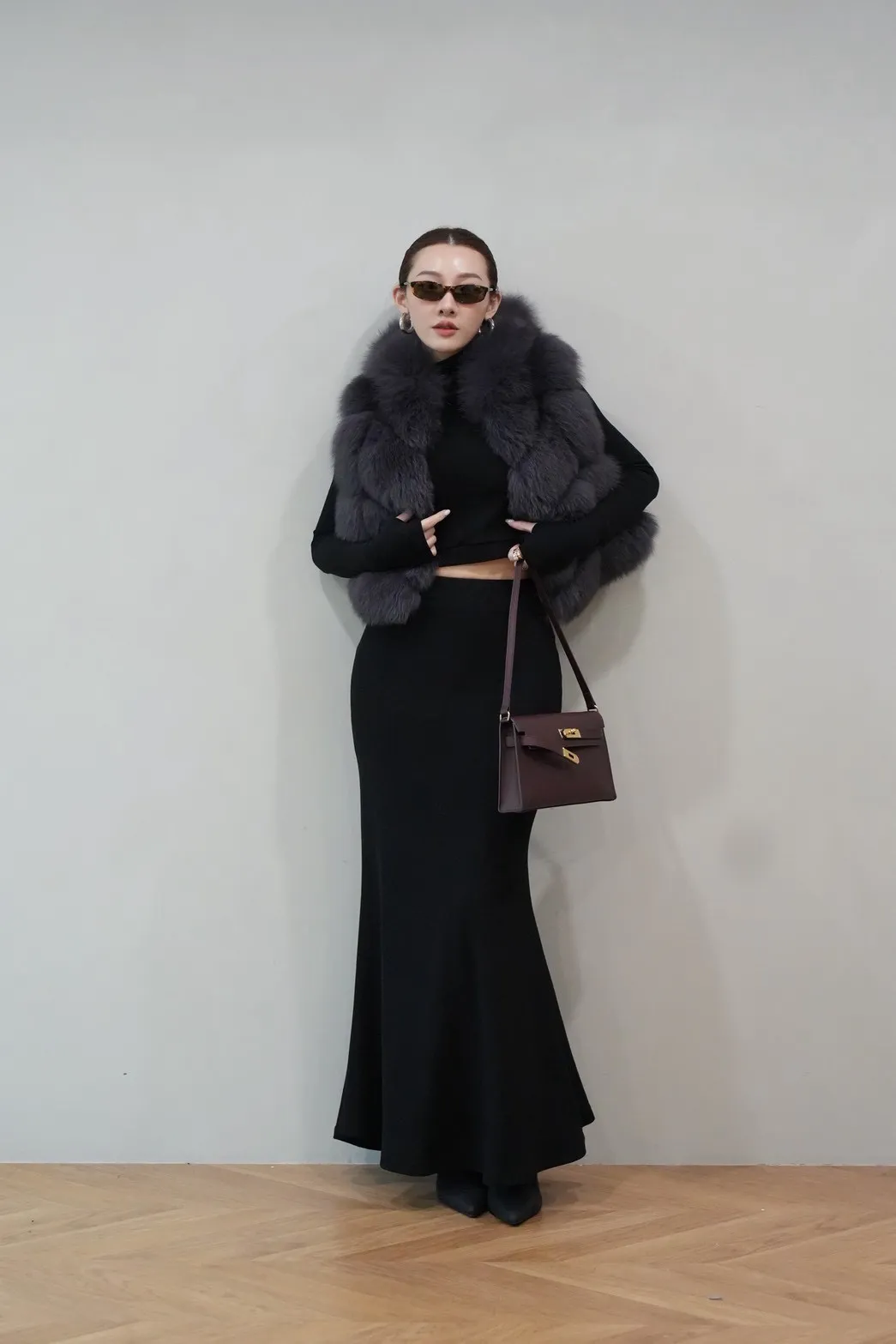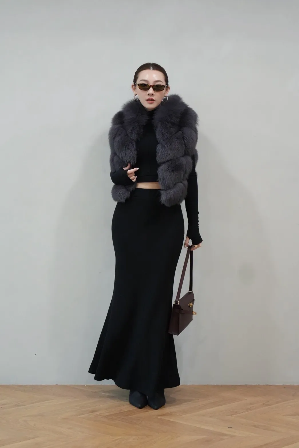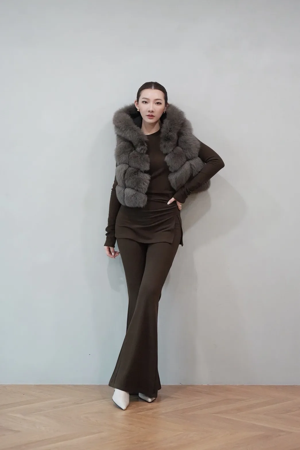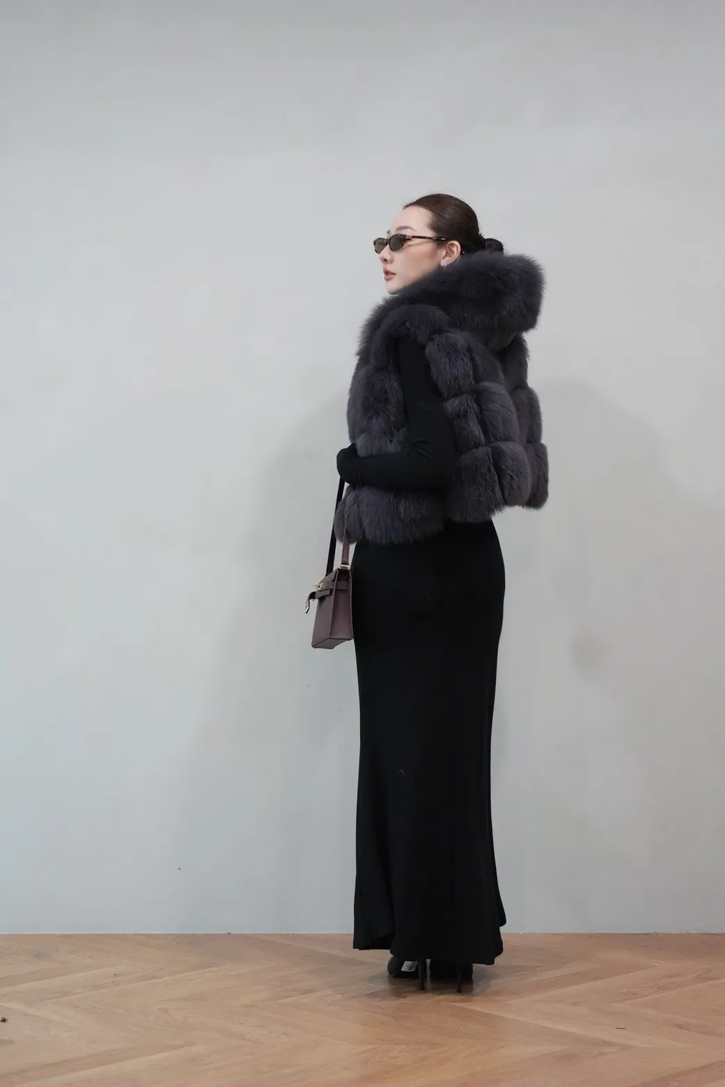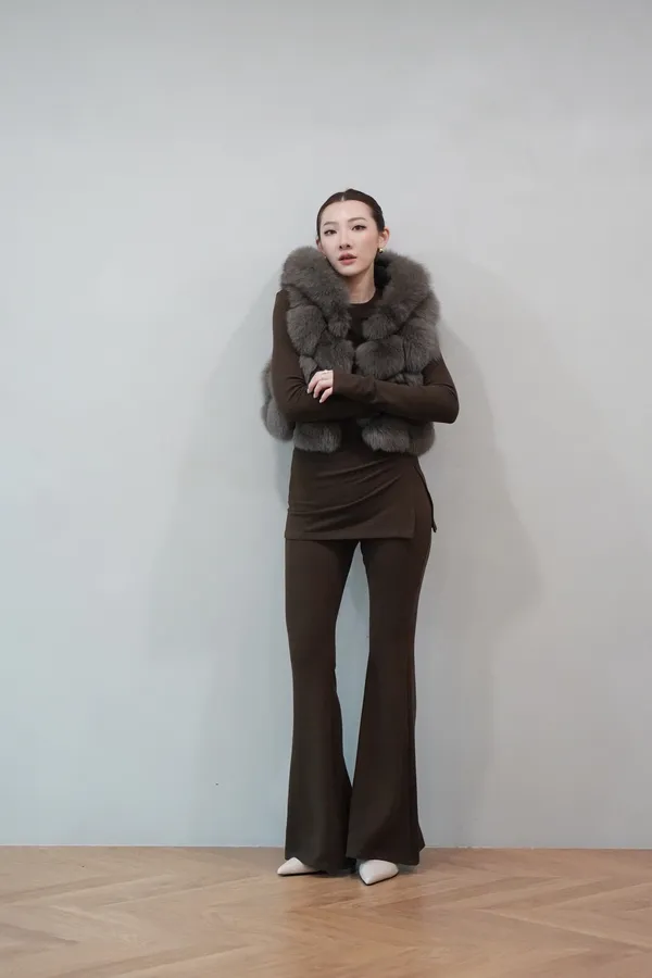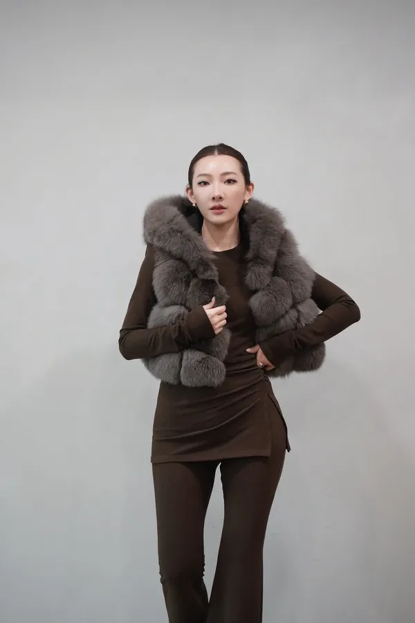 2025FW 連帽狐狸毛短背心