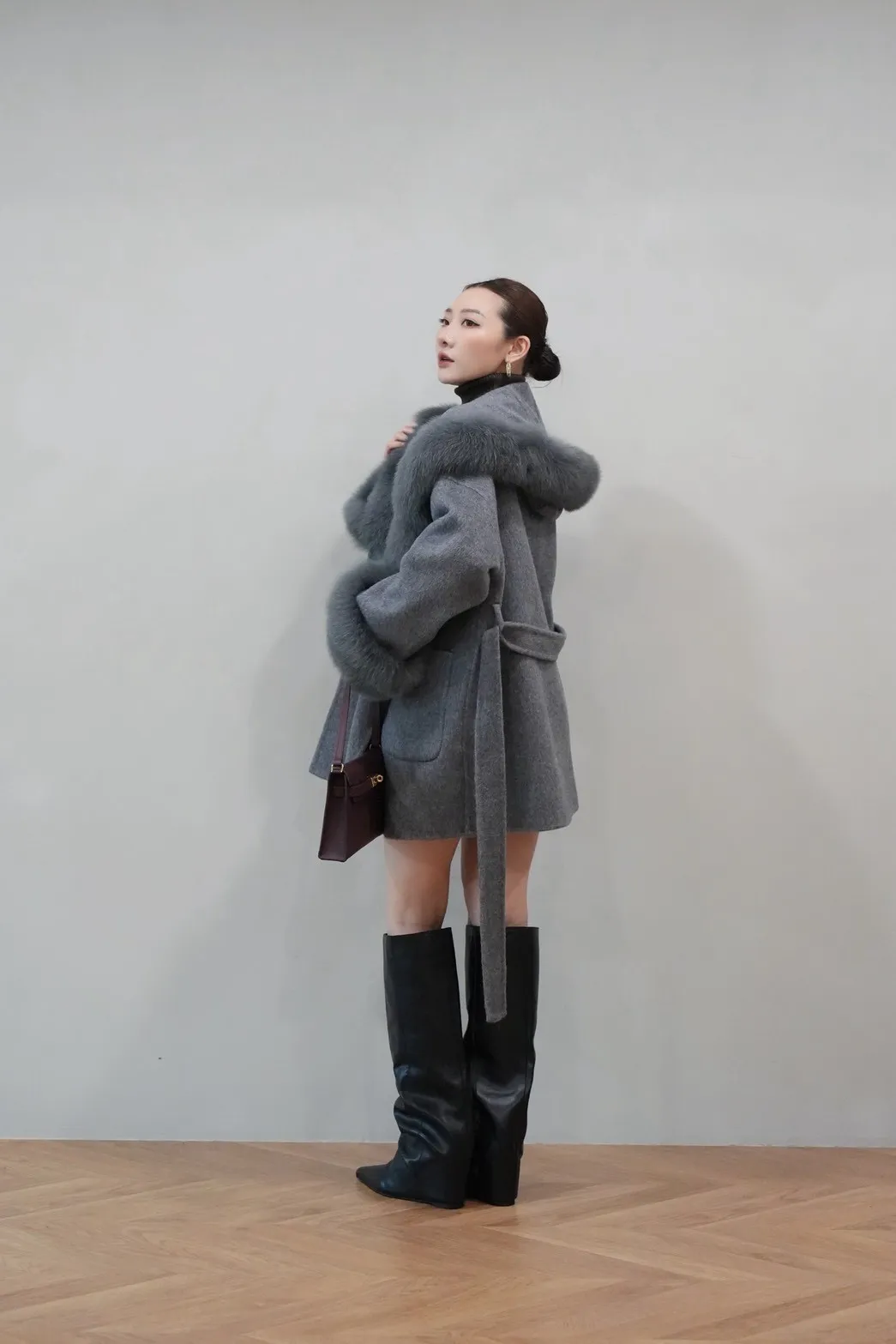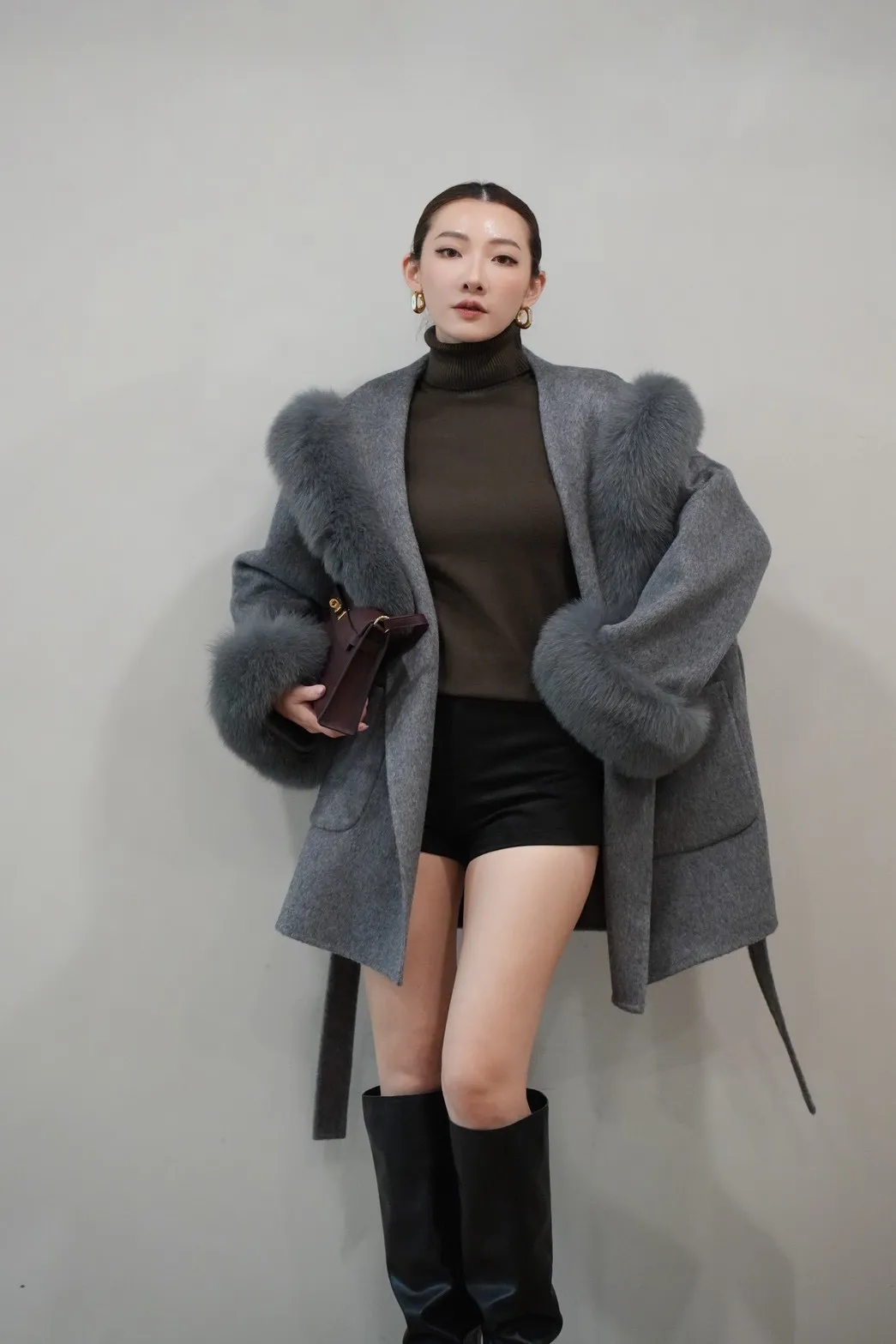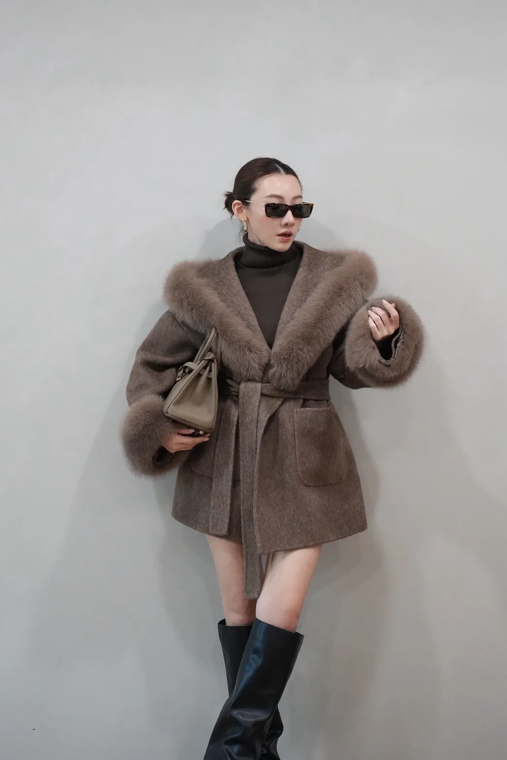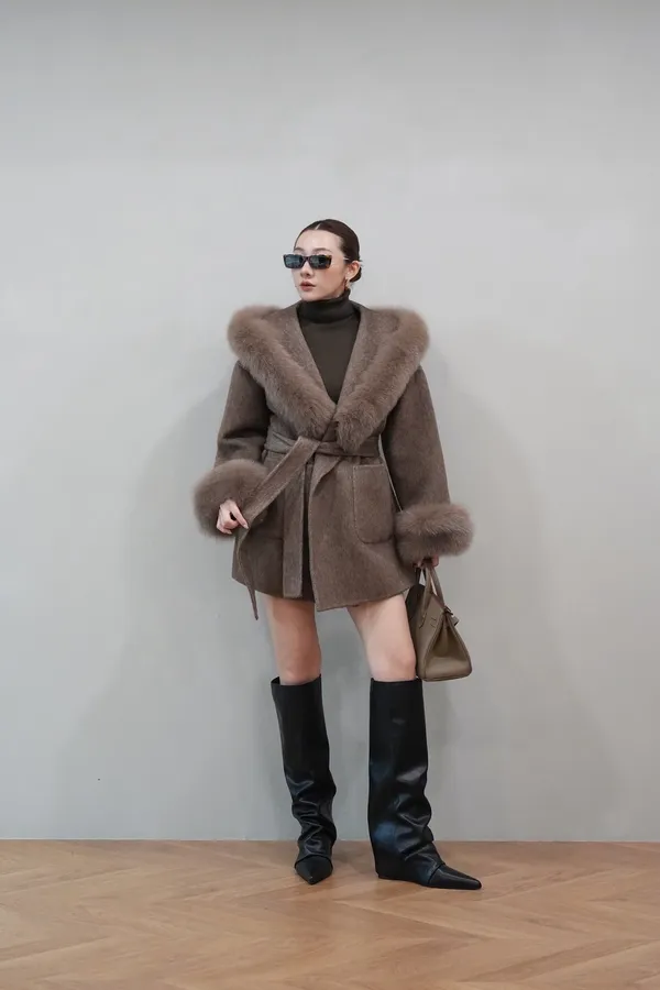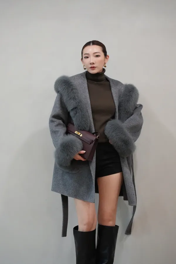 2025FW 狐狸毛帽袖羊毛短大衣