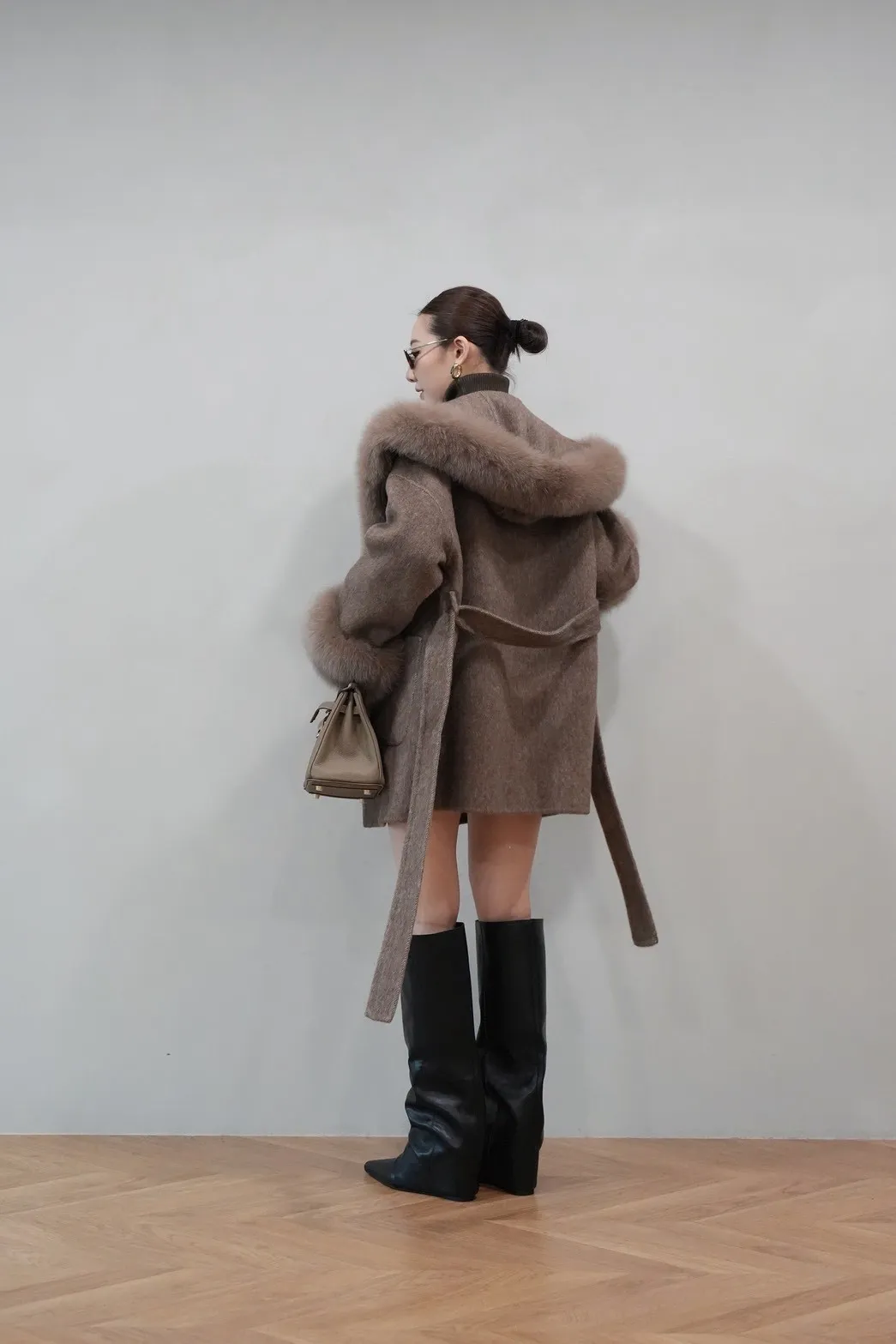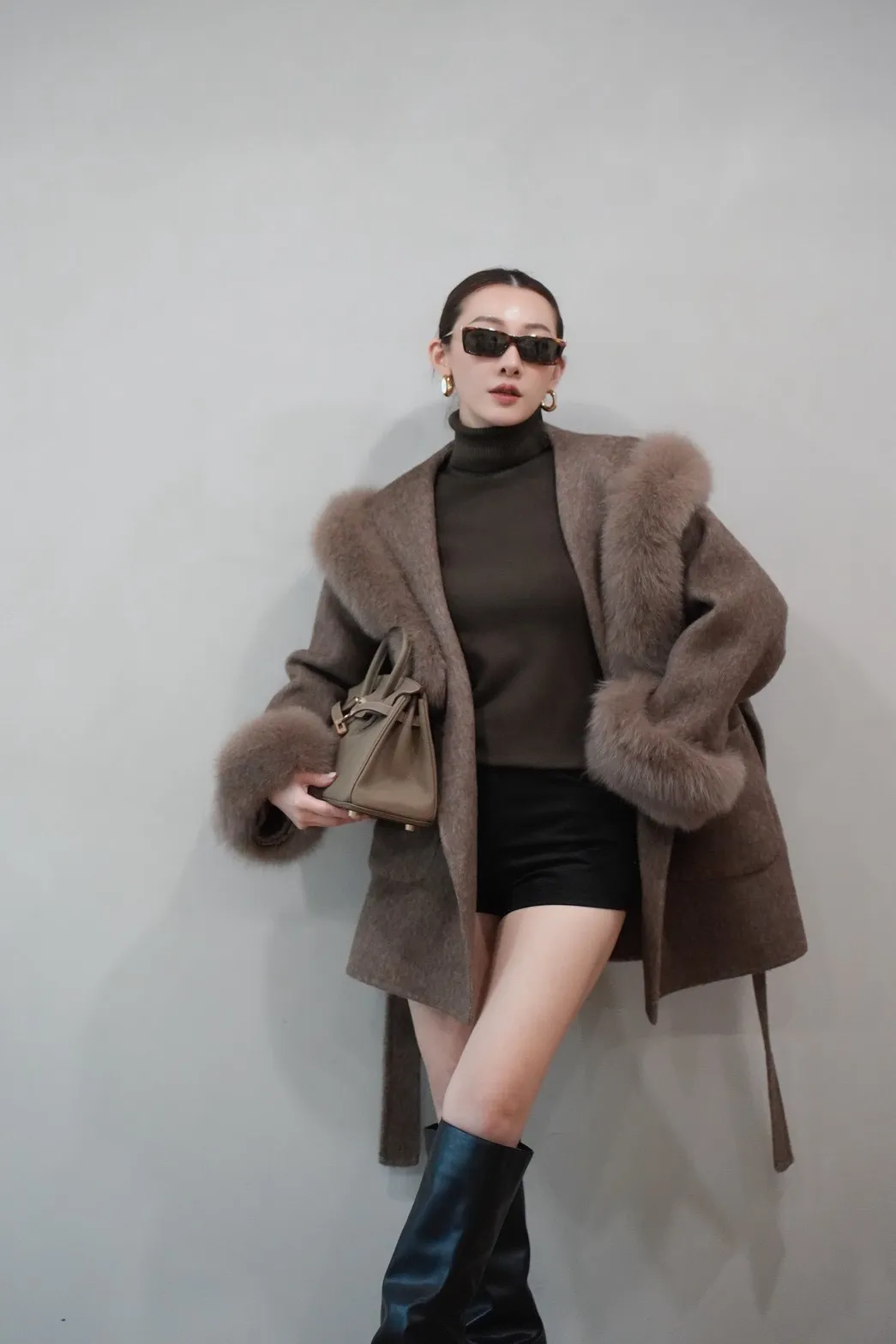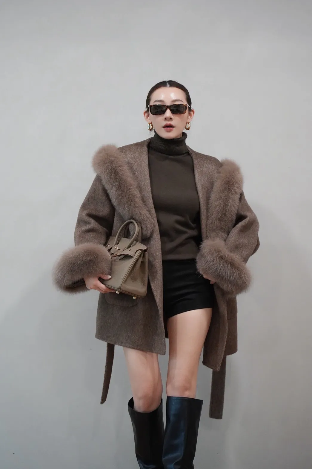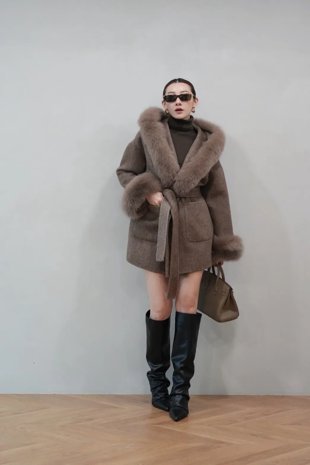 2025FW 狐狸毛帽袖羊毛短大衣