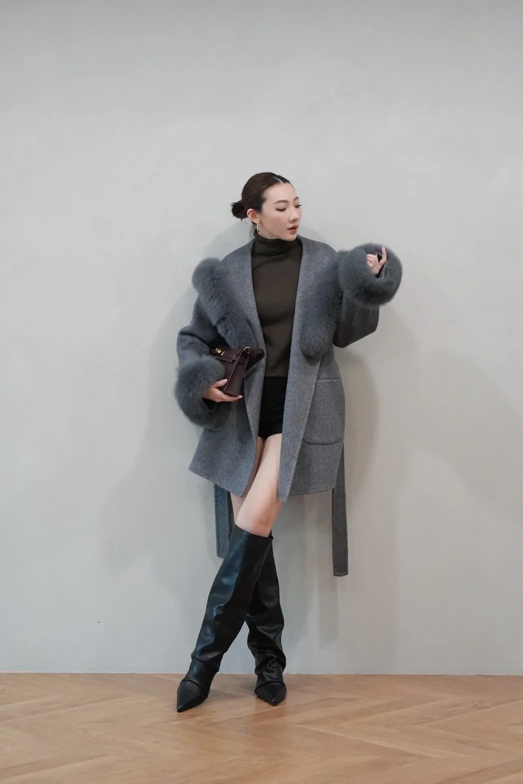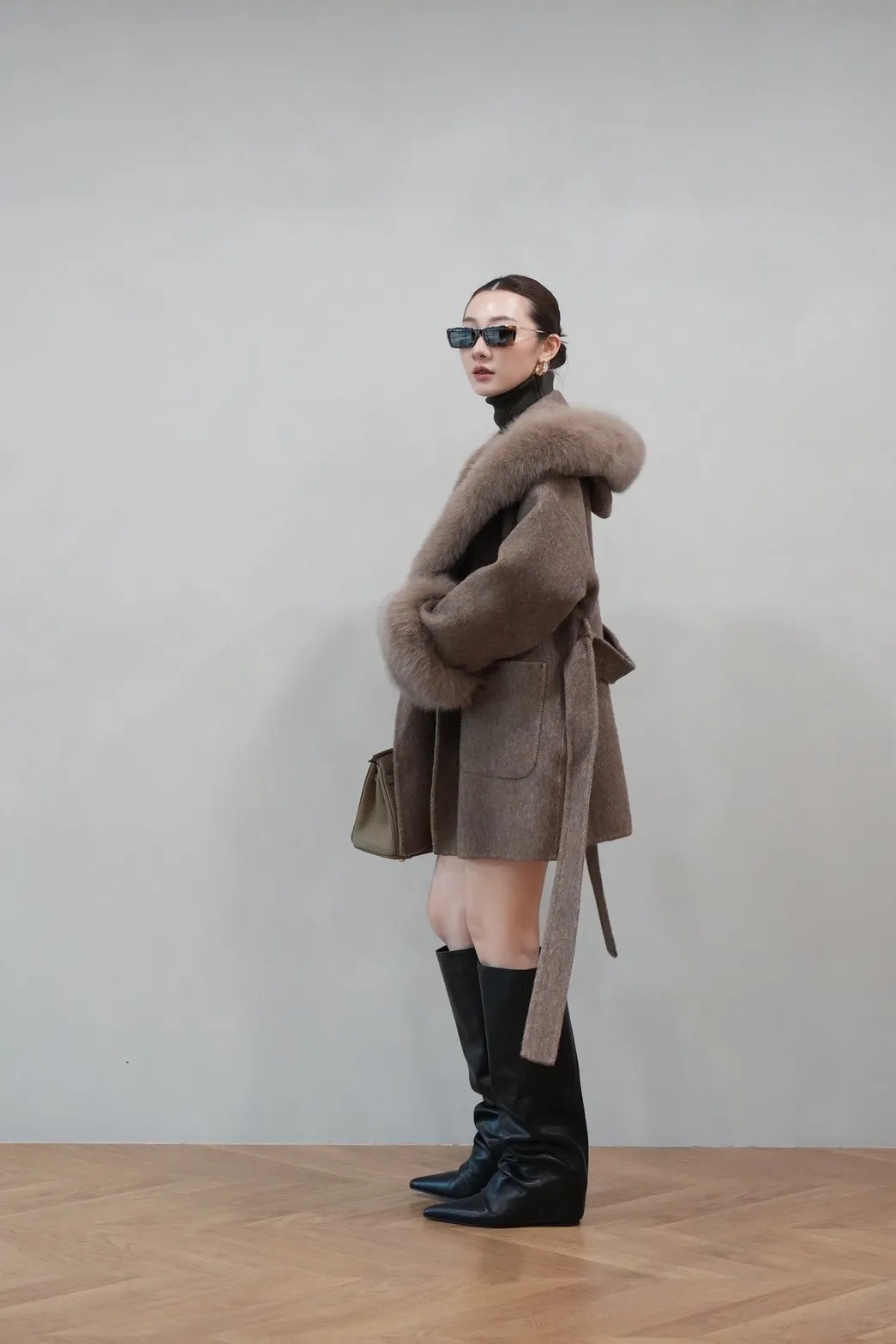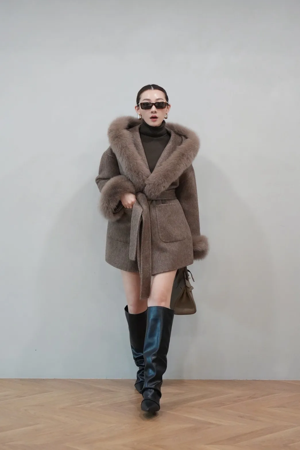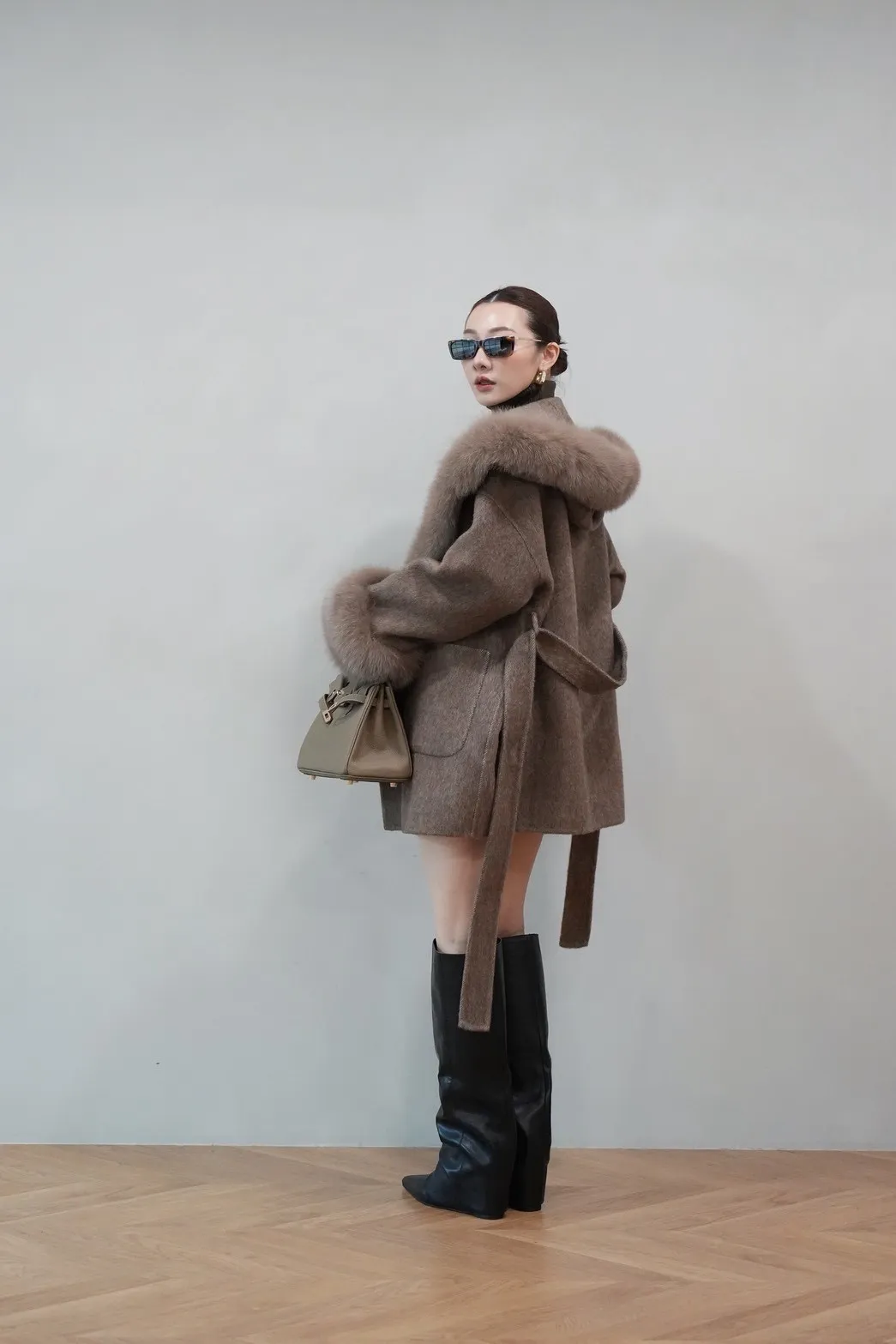 2025FW 狐狸毛帽袖羊毛短大衣