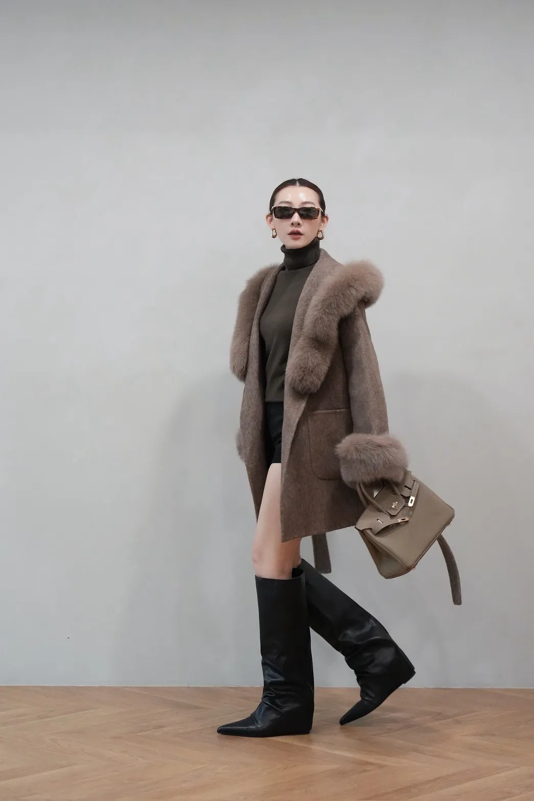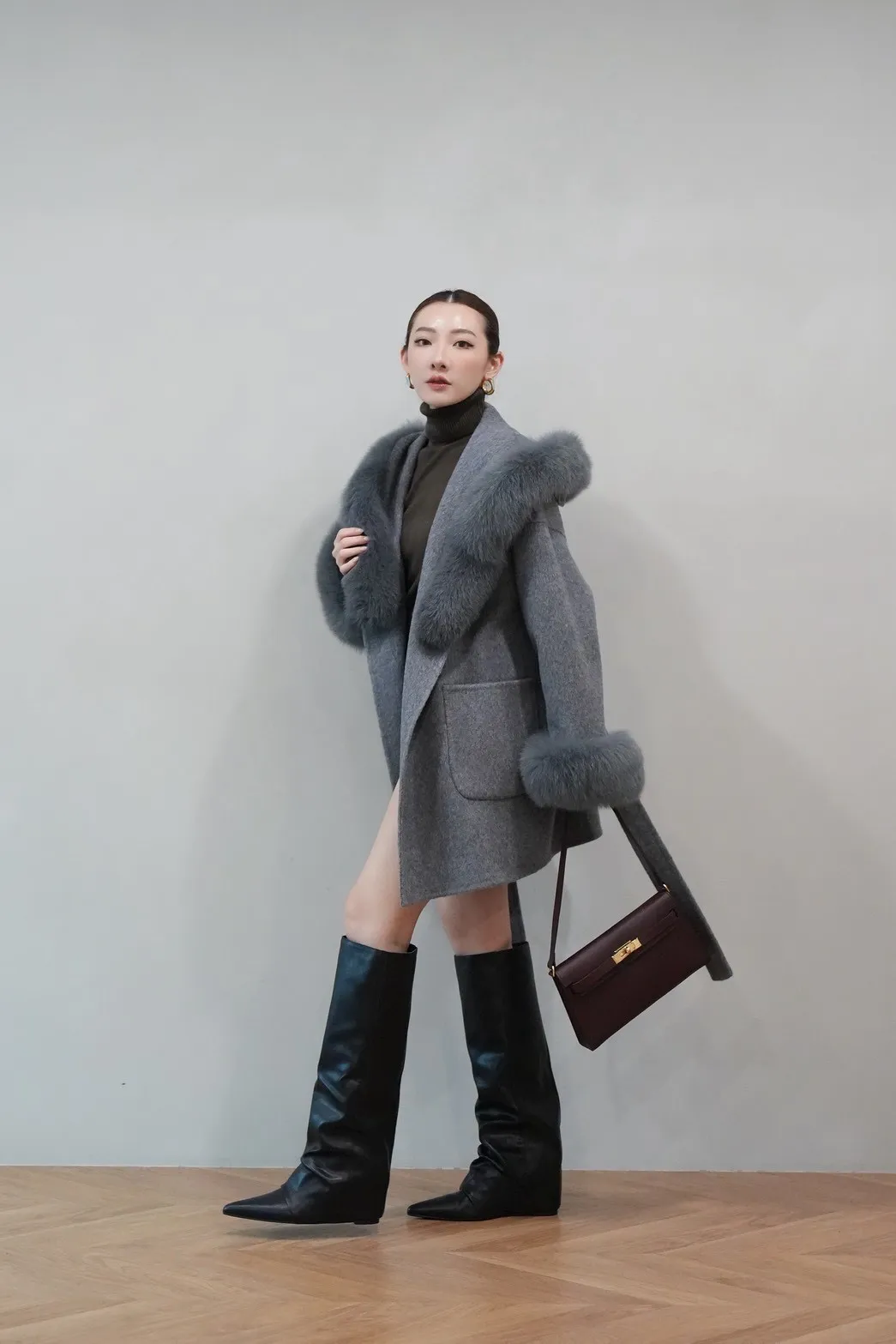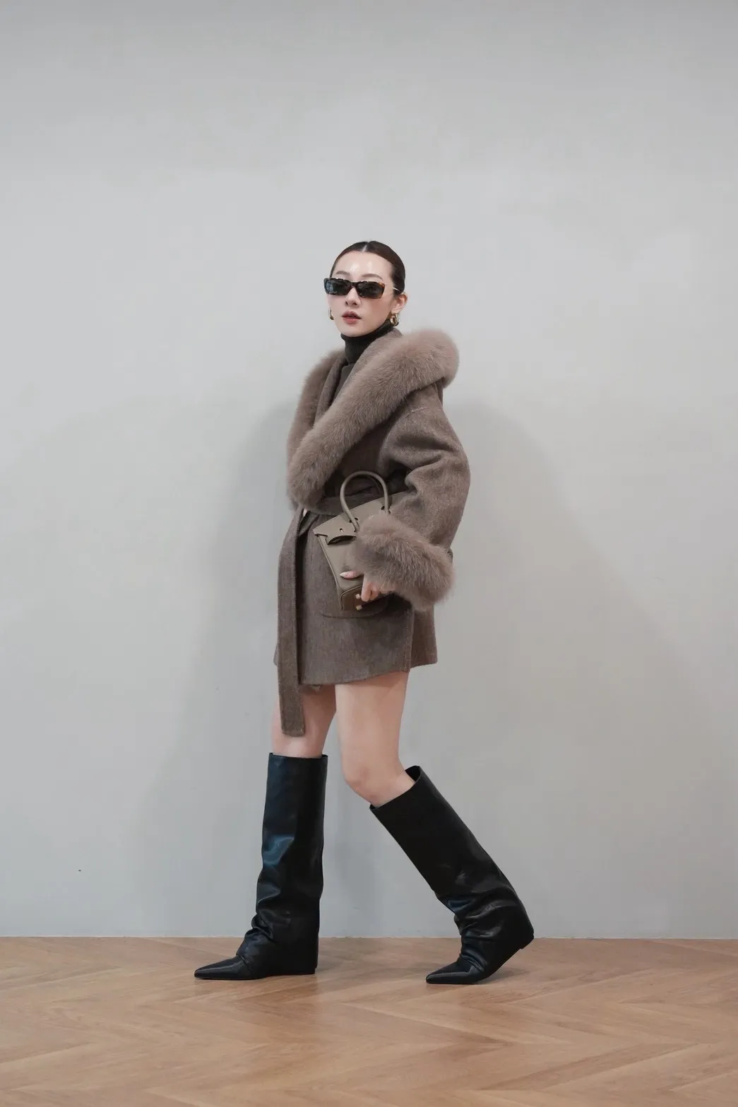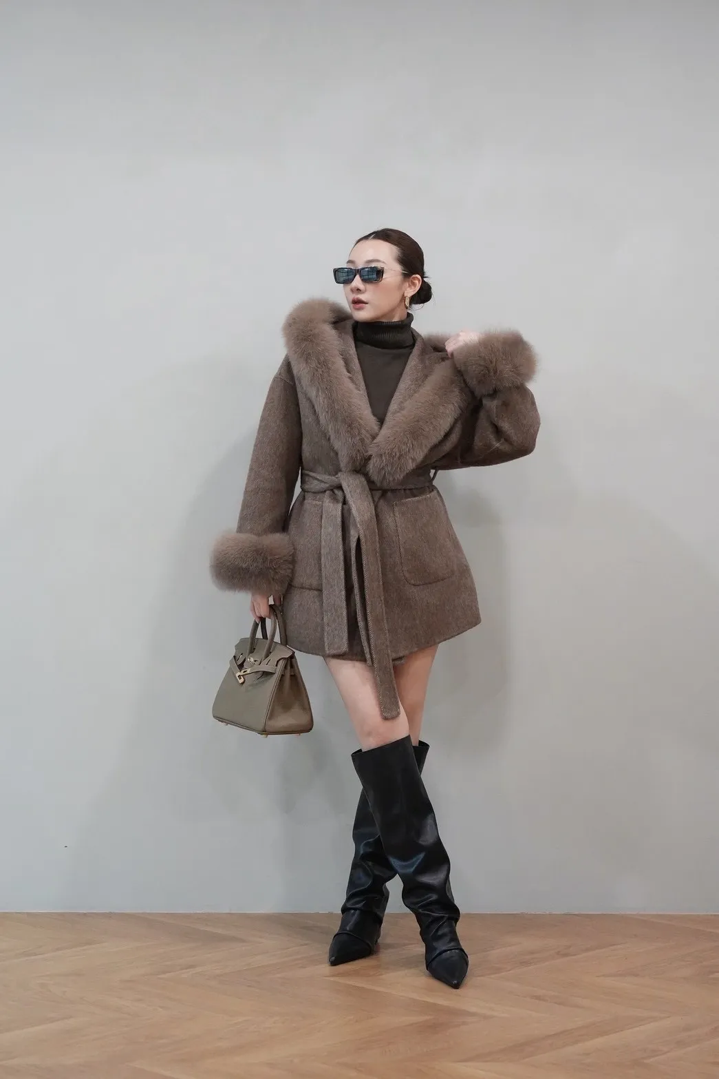 2025FW 狐狸毛帽袖羊毛短大衣