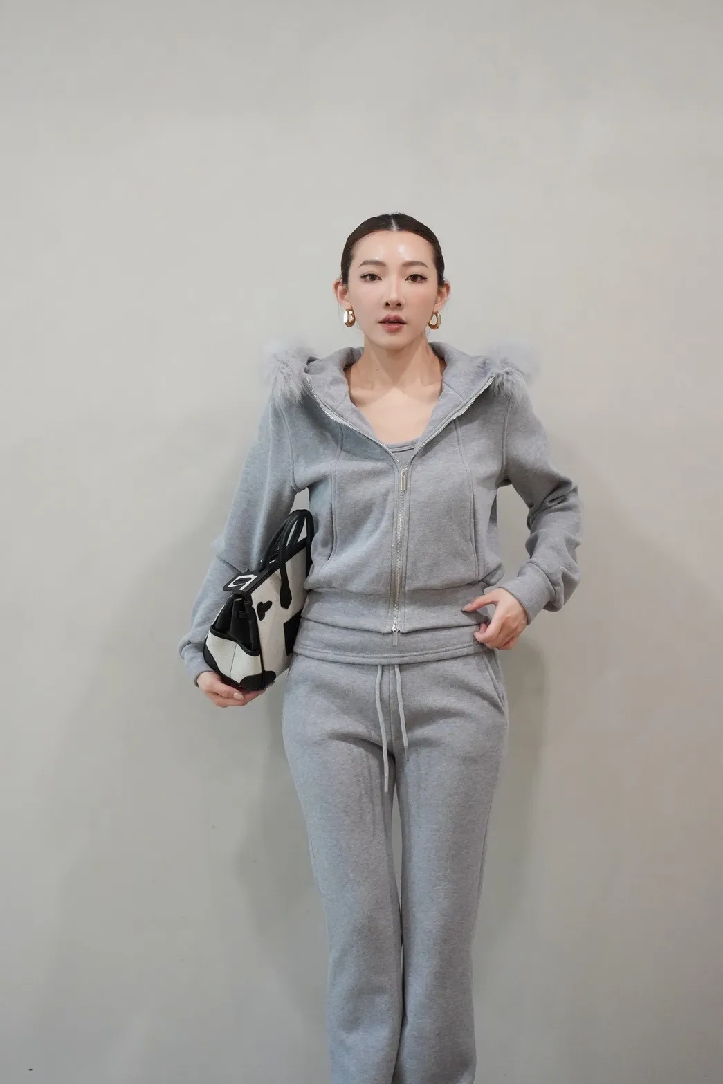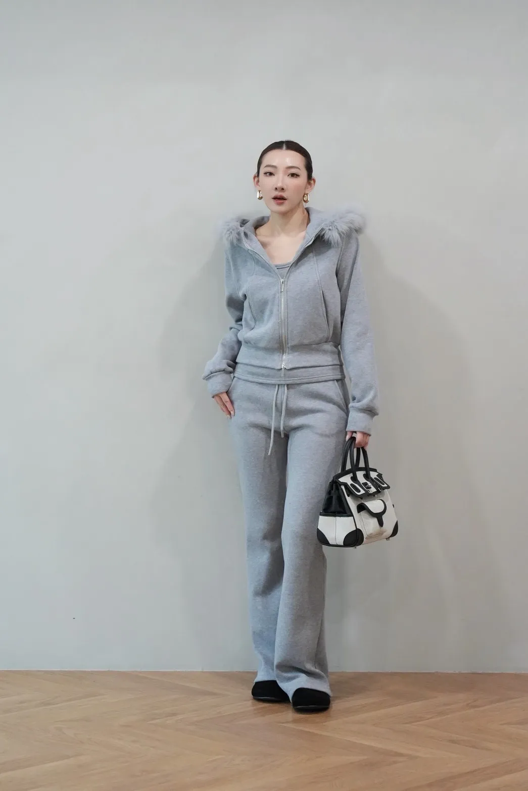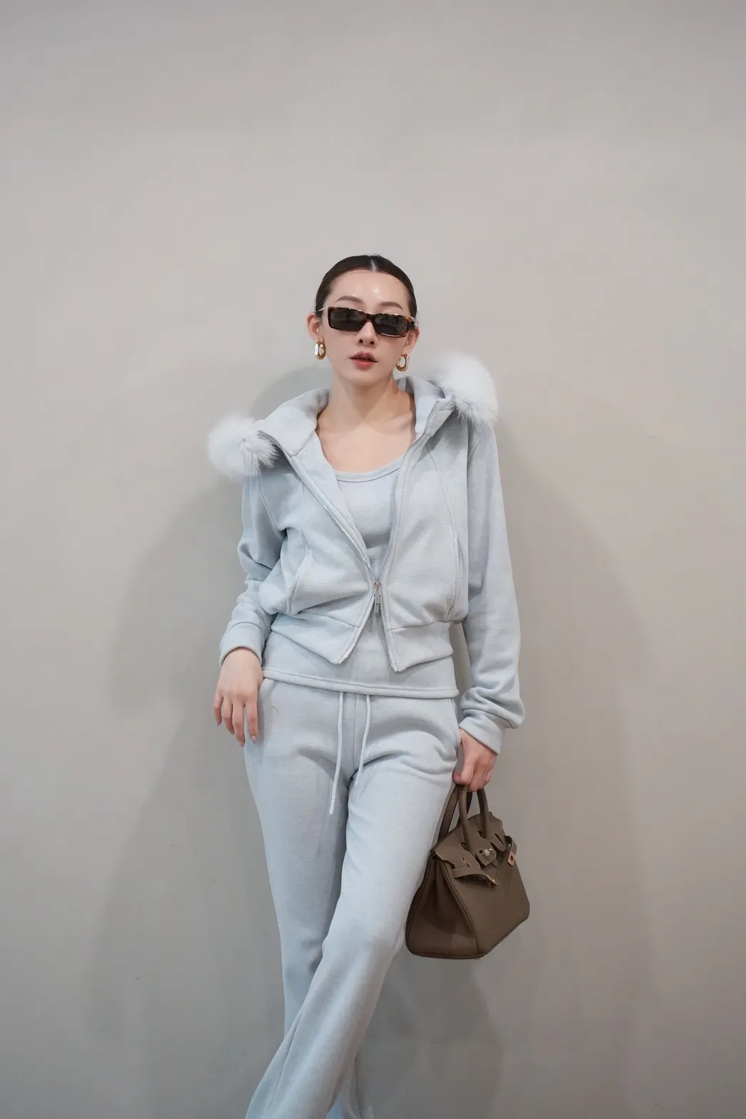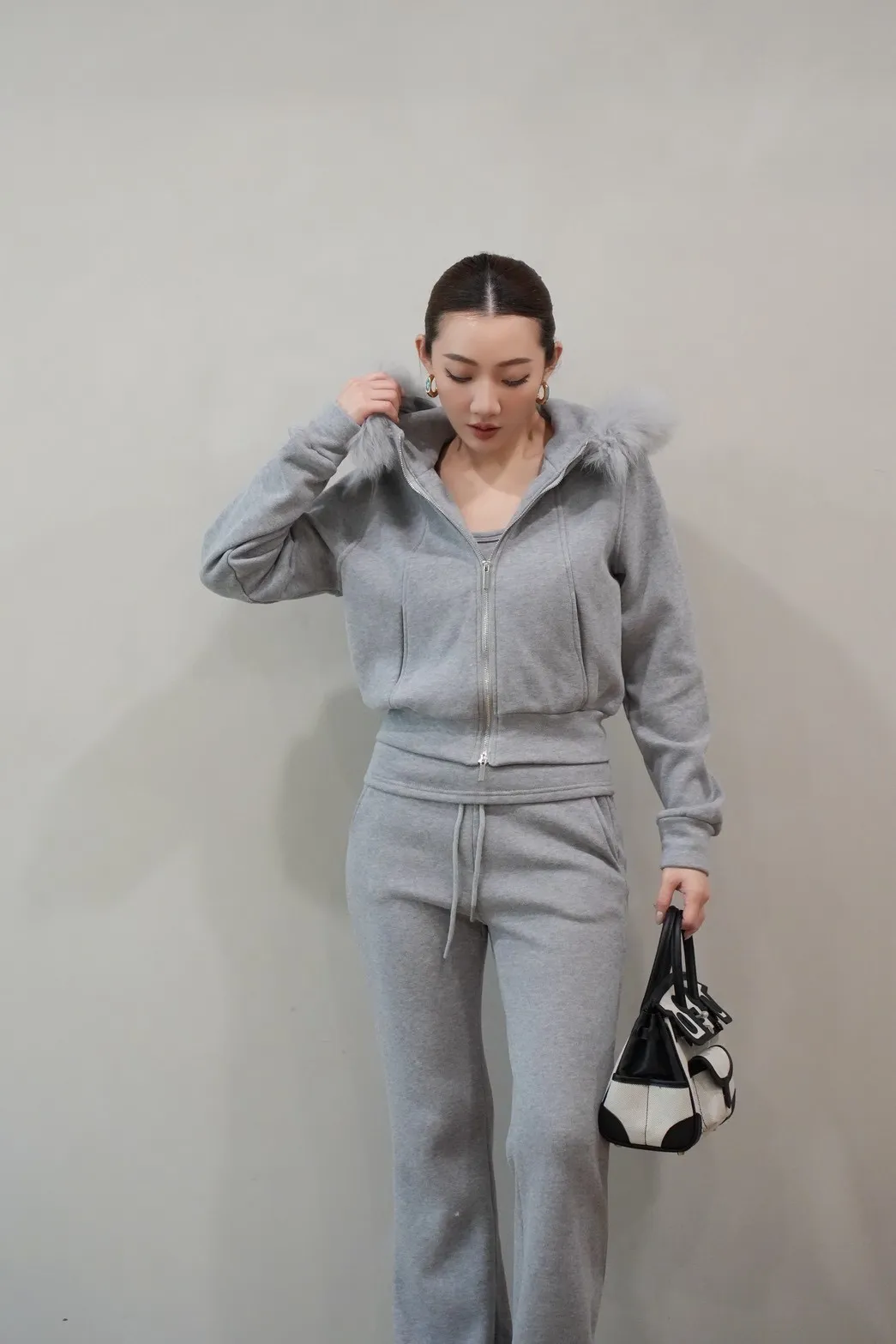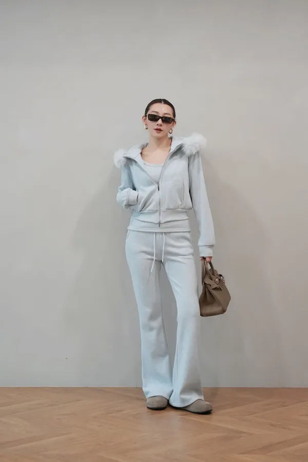 2026SS 狐狸毛帽三件式褲套裝