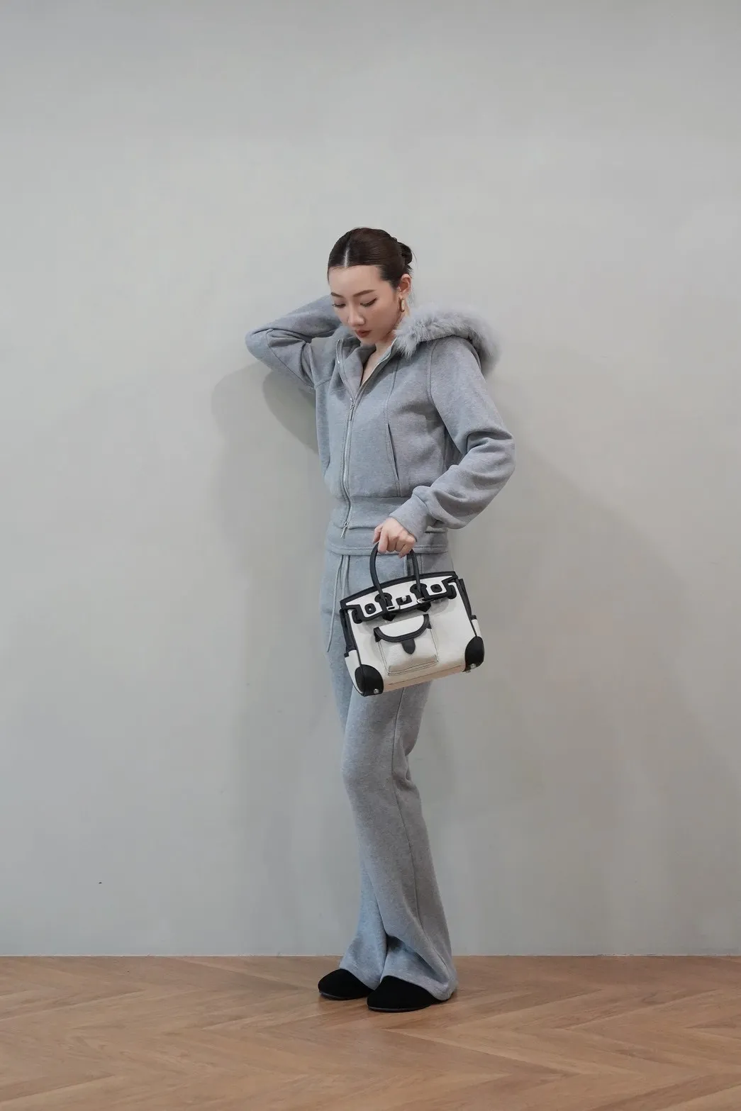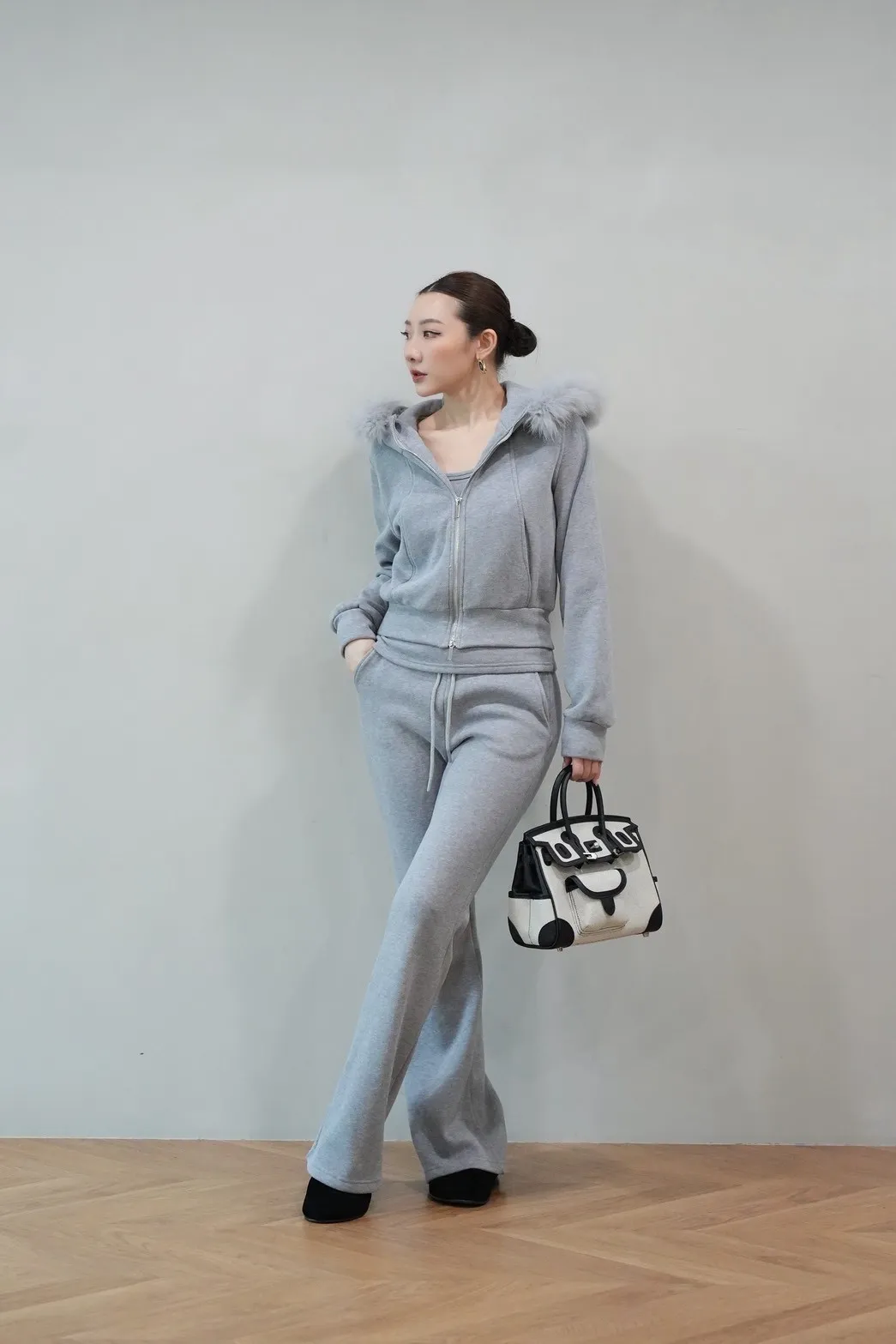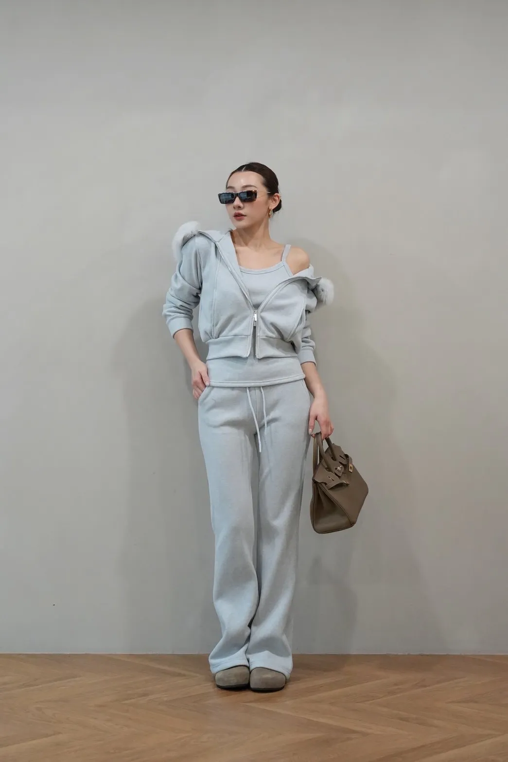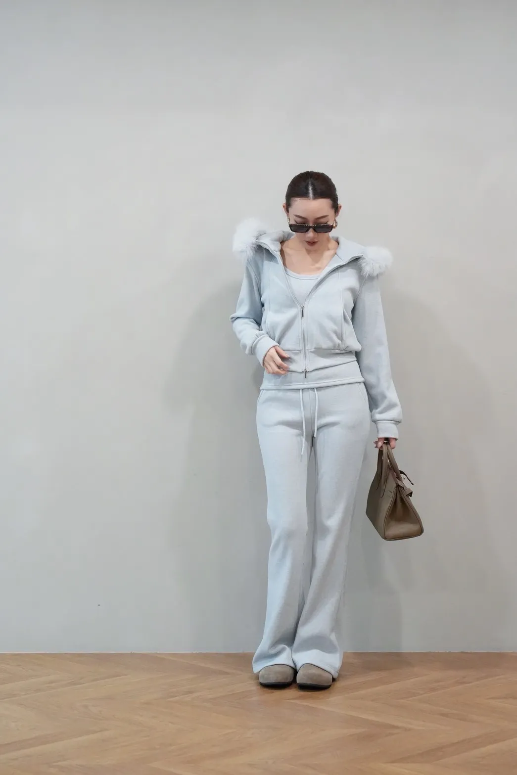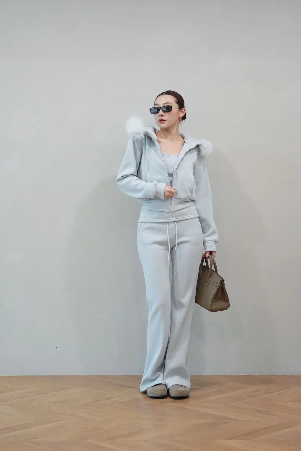 2026SS 狐狸毛帽三件式褲套裝