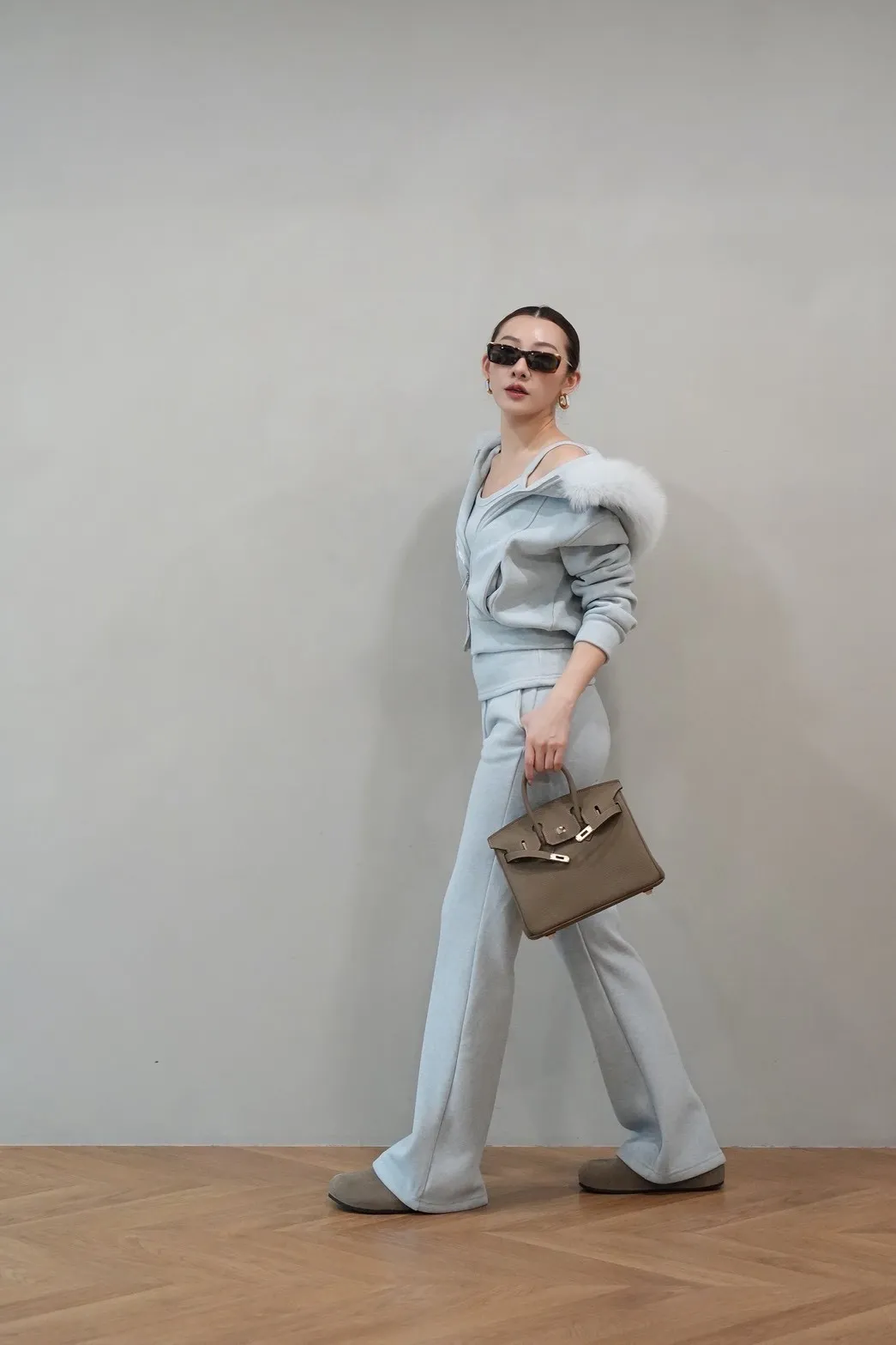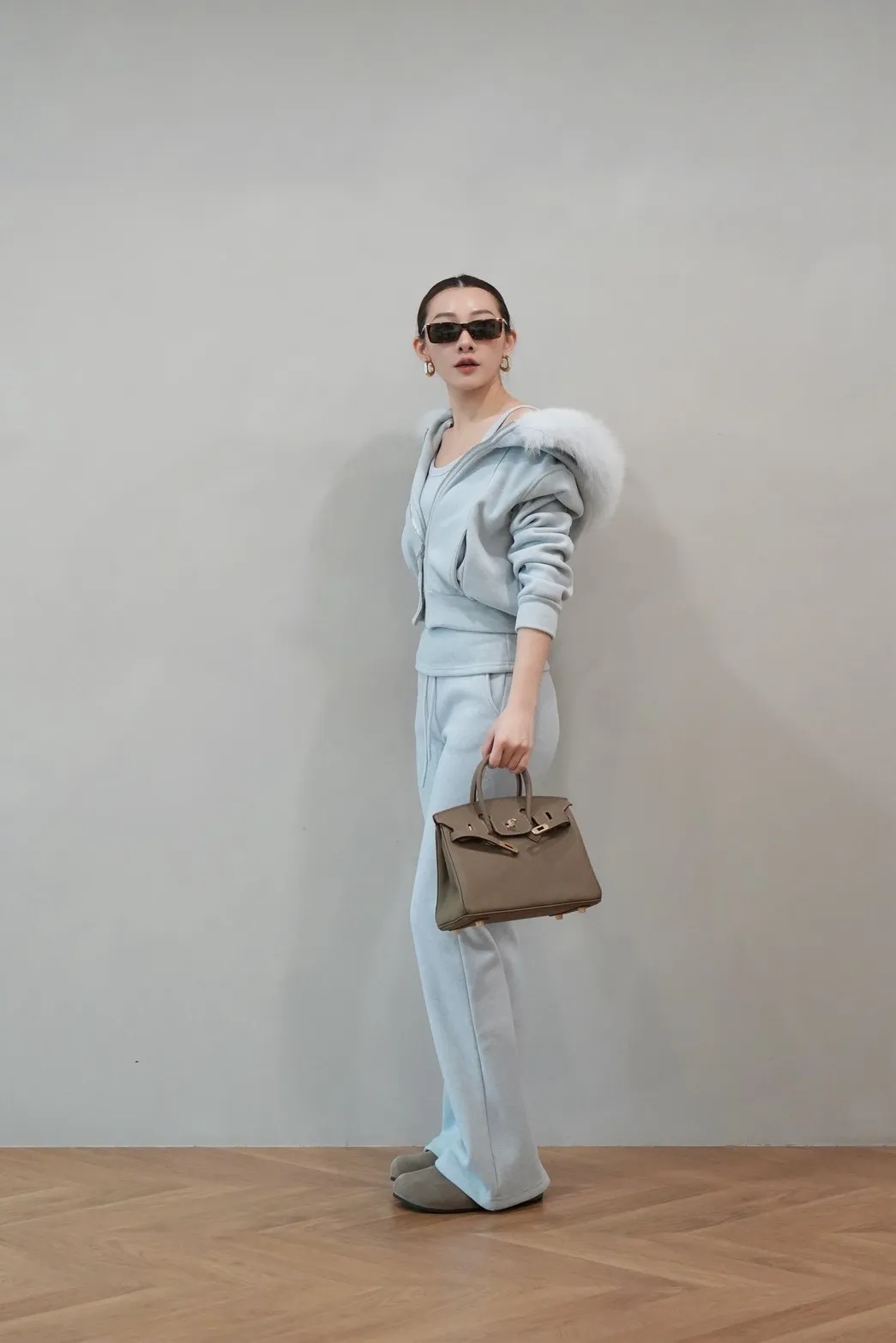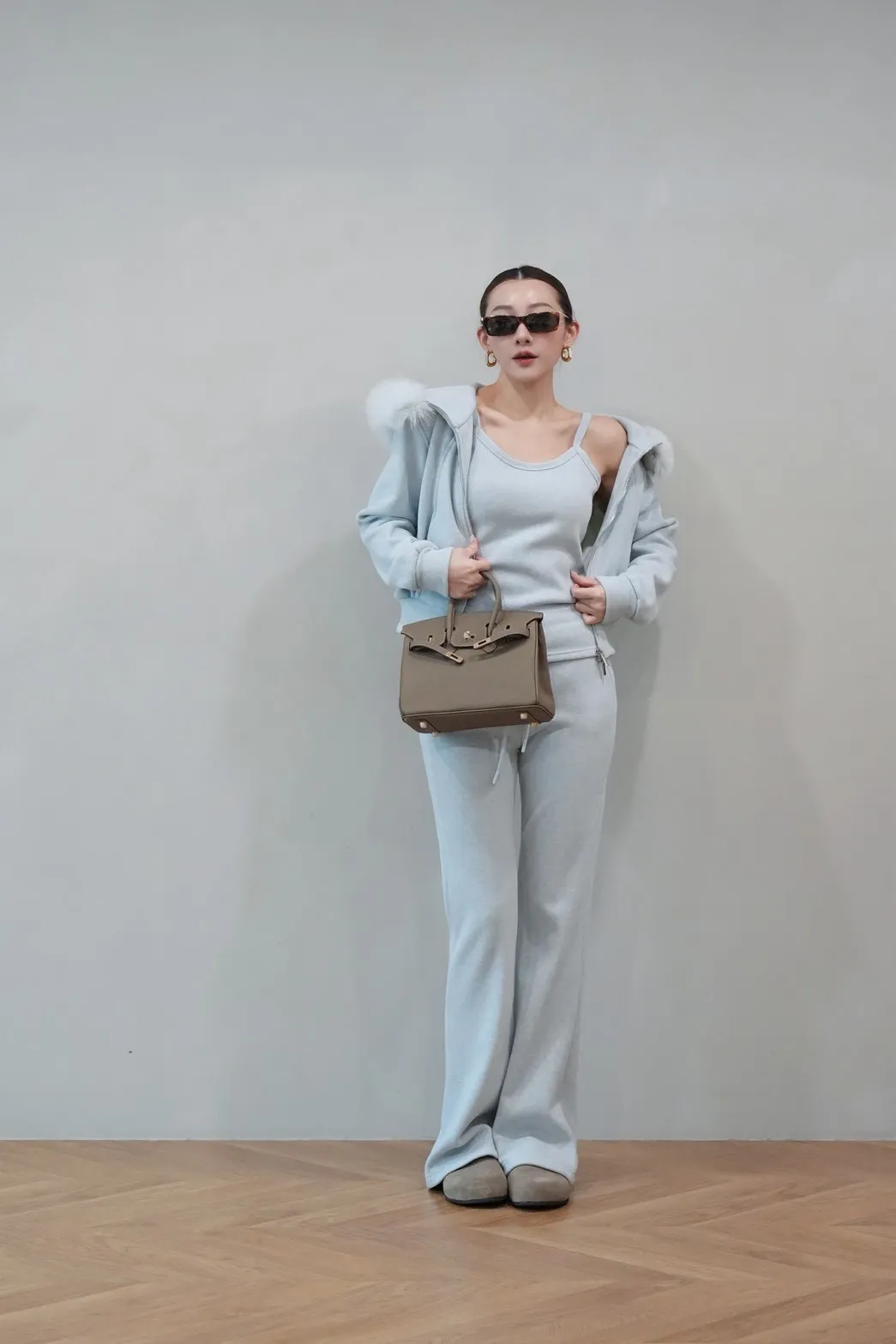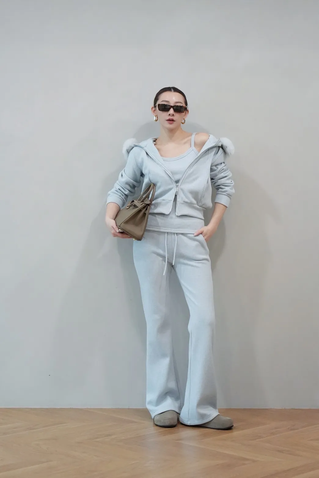 2026SS 狐狸毛帽三件式褲套裝