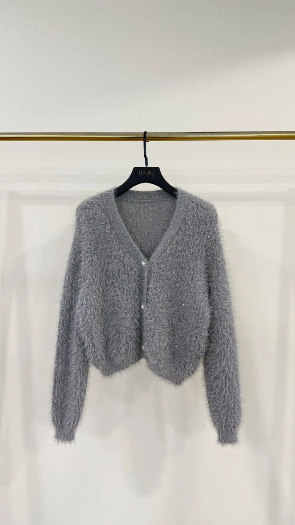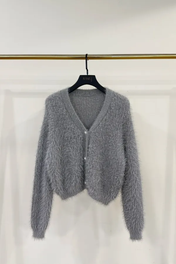 2026SS 亮片軟毛海珍珠釦上衣