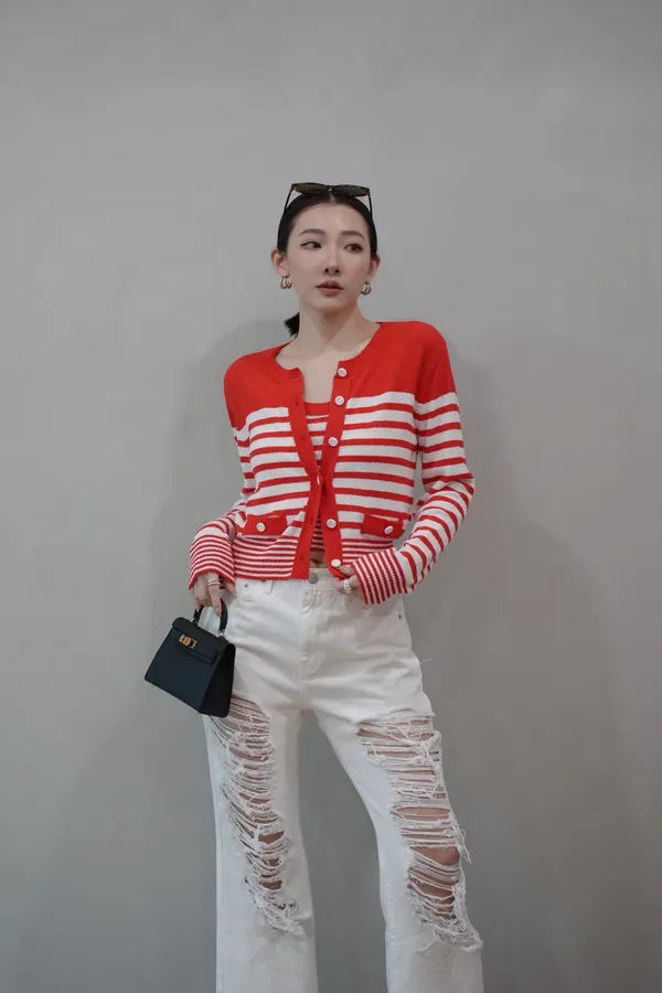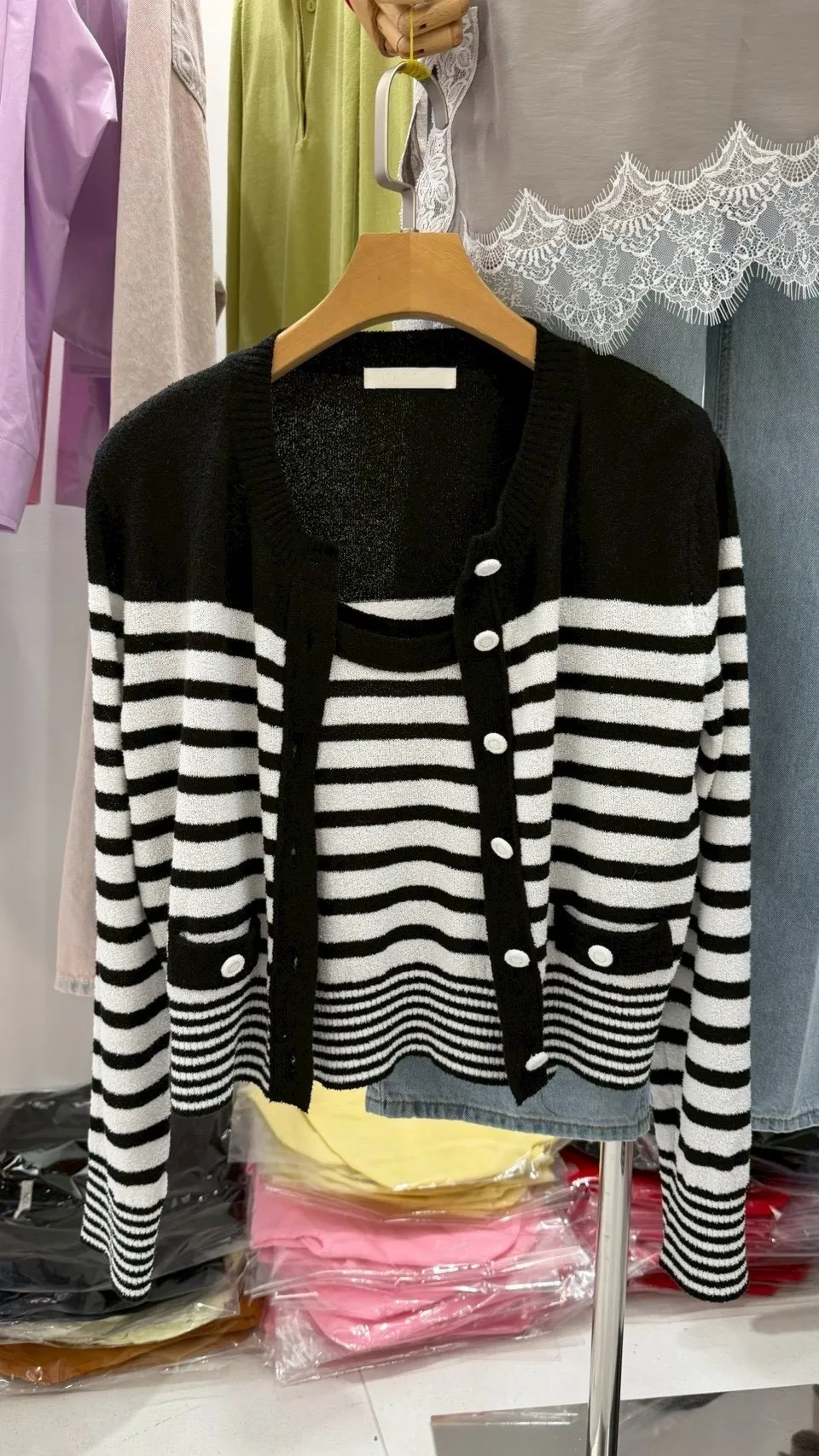 2026SS 橫條背心+外套兩件式