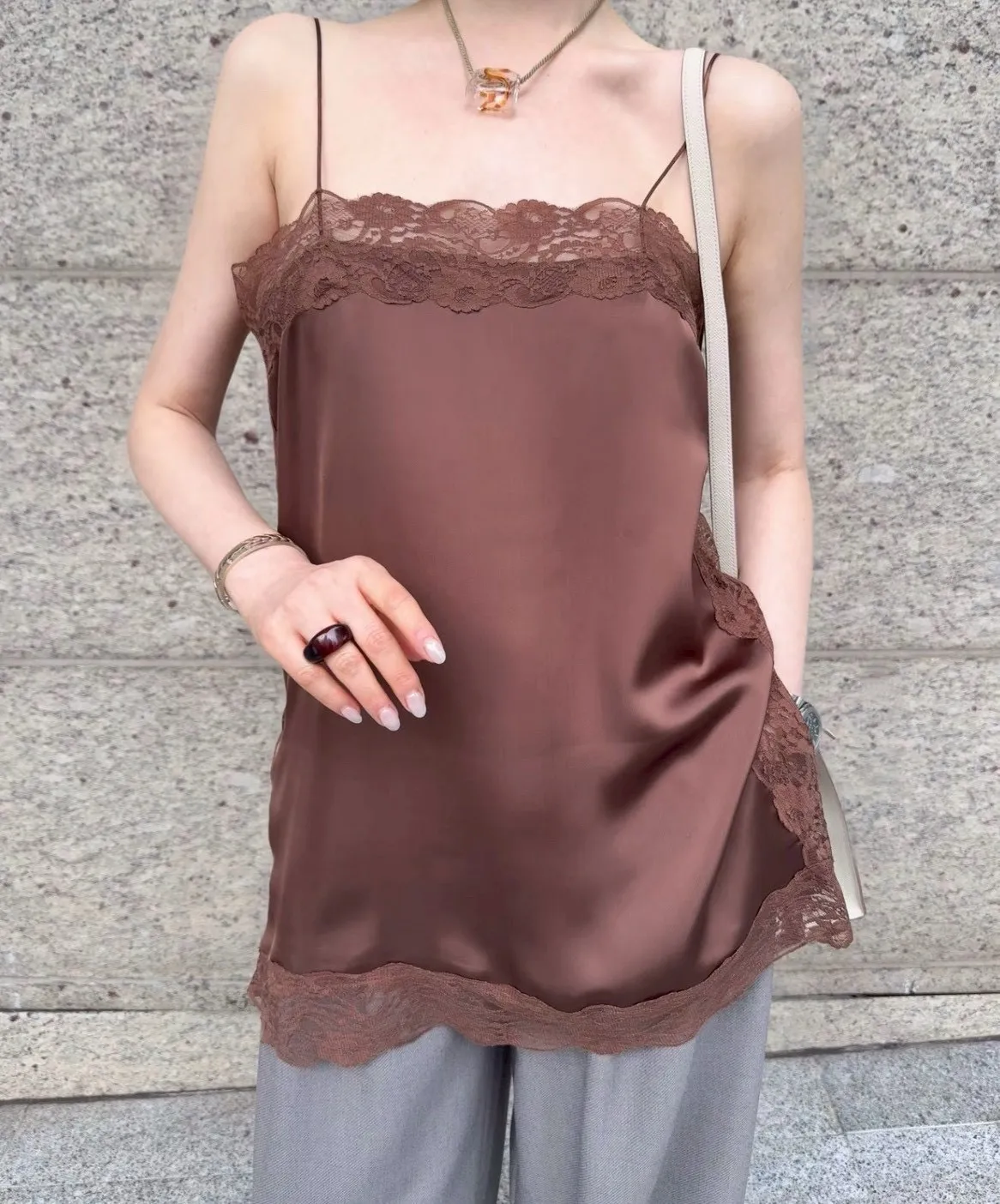 2026SS 側衩簍蕾絲緞背心