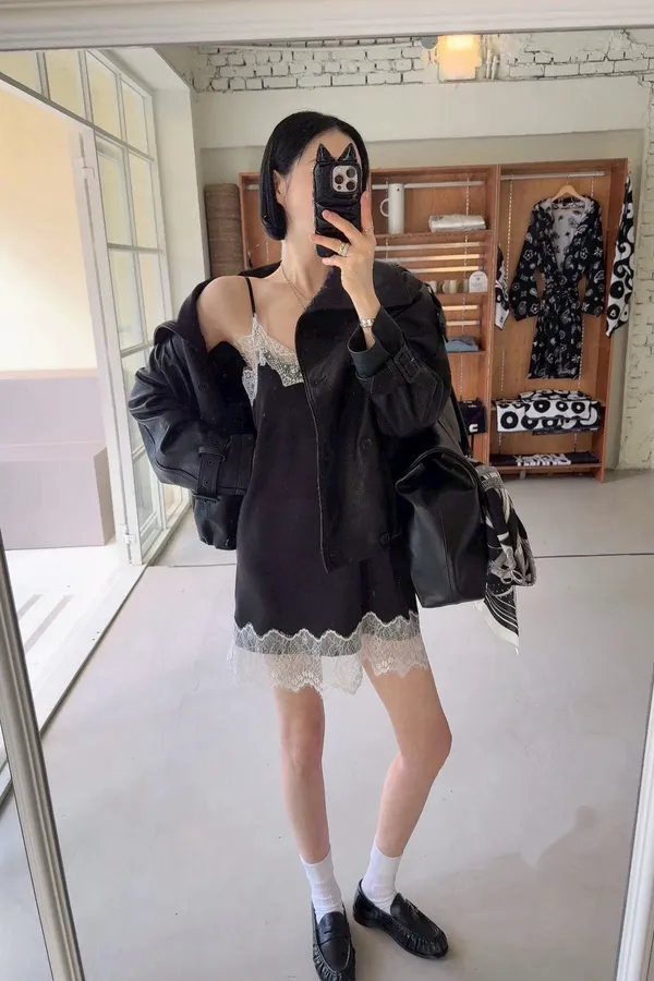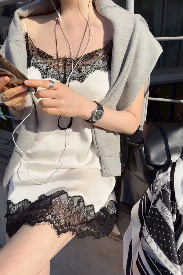 2026SS 配色蕾絲絲緞洋