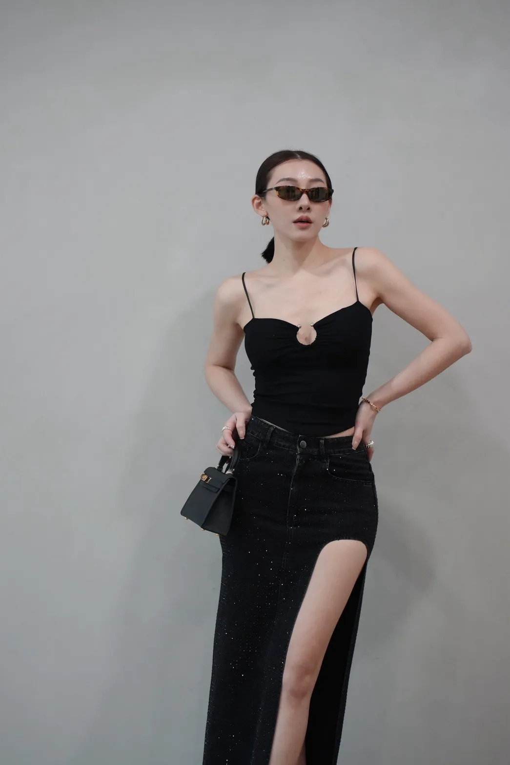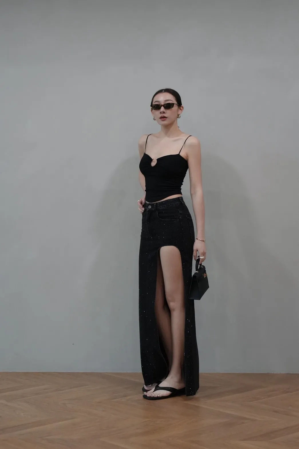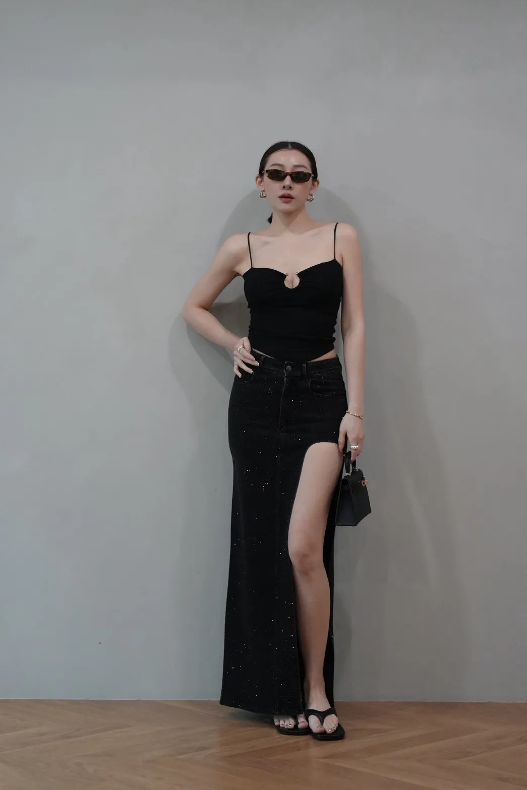 2026SS 【自訂款】開衩長腿滿鑽裙