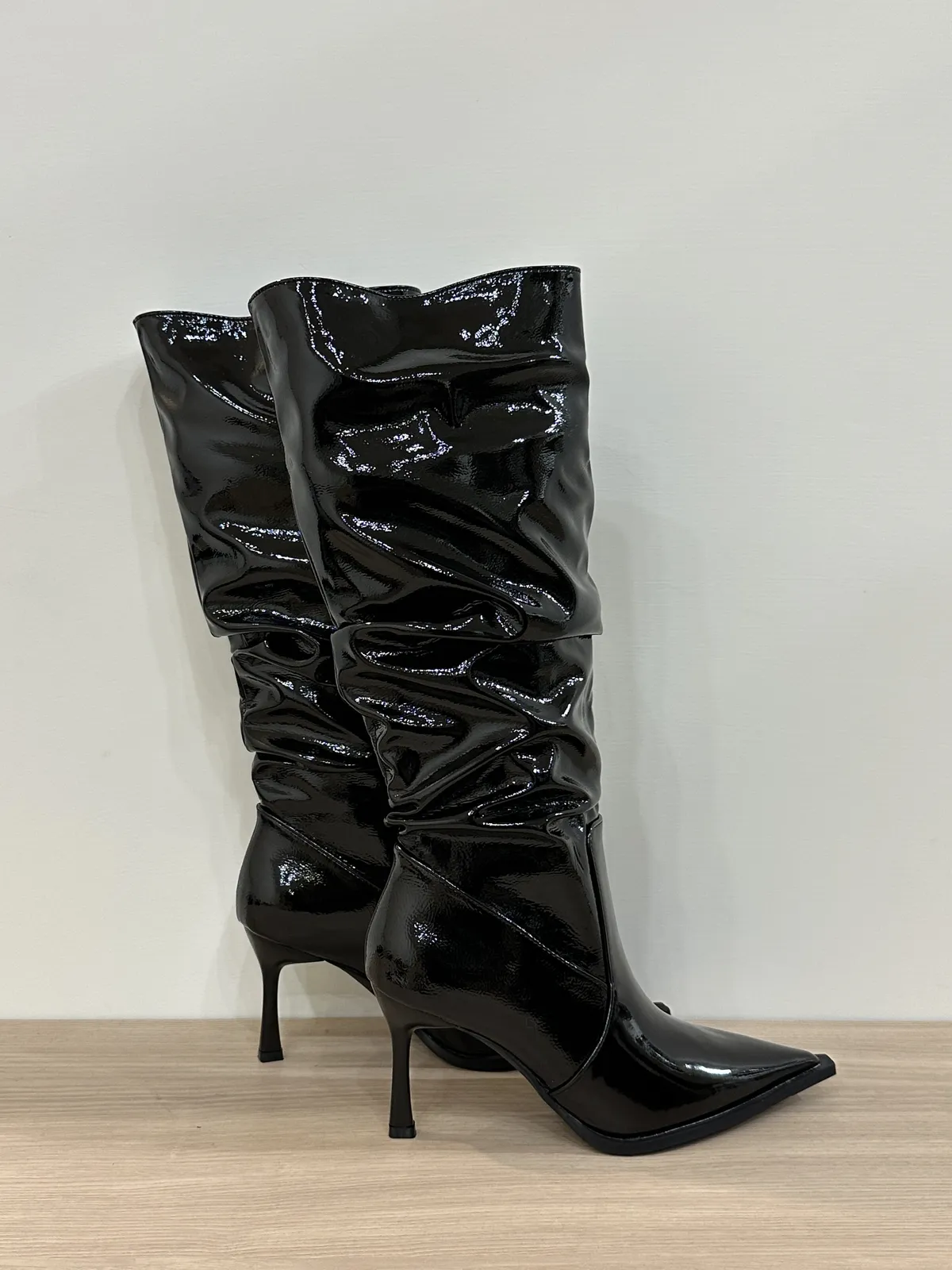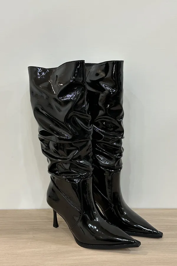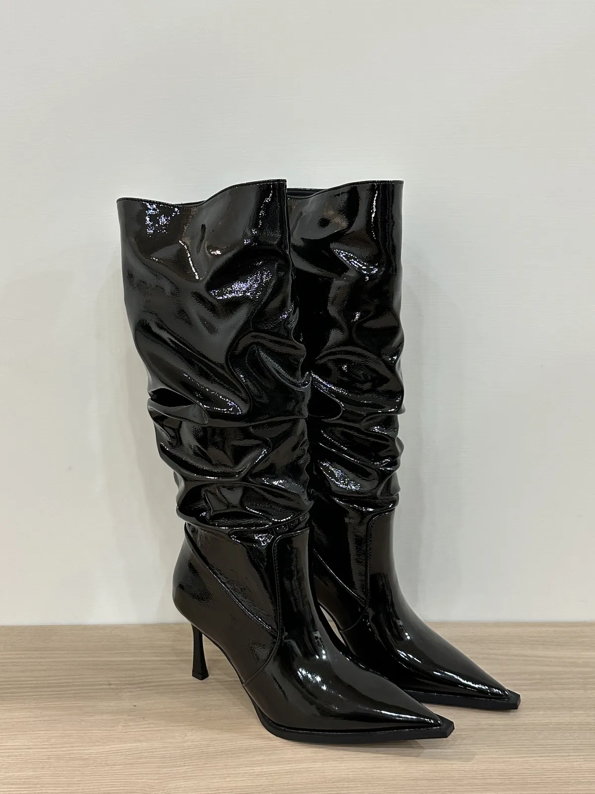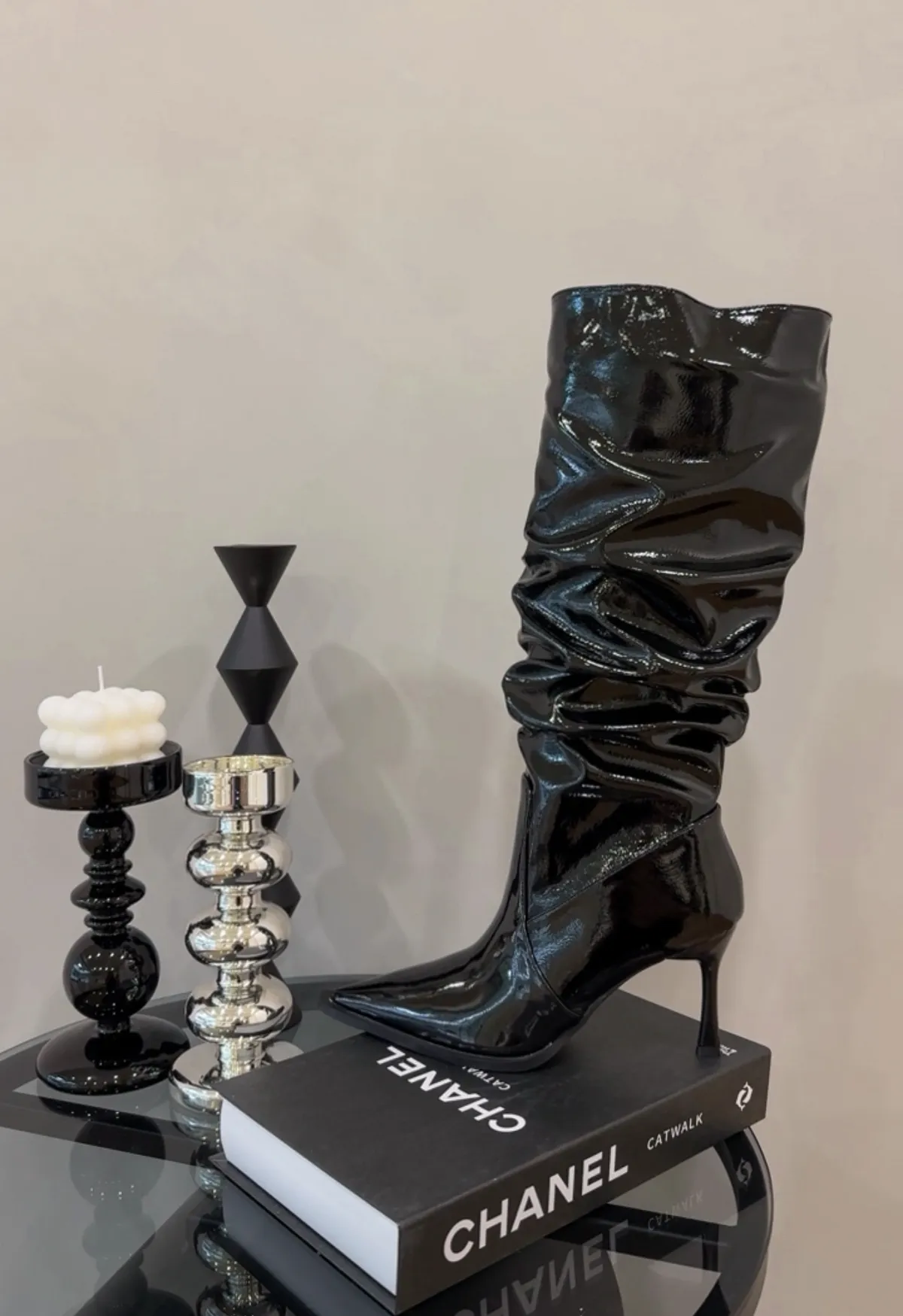 2025FW 【自訂款】漆皮抓皺尖頭長靴